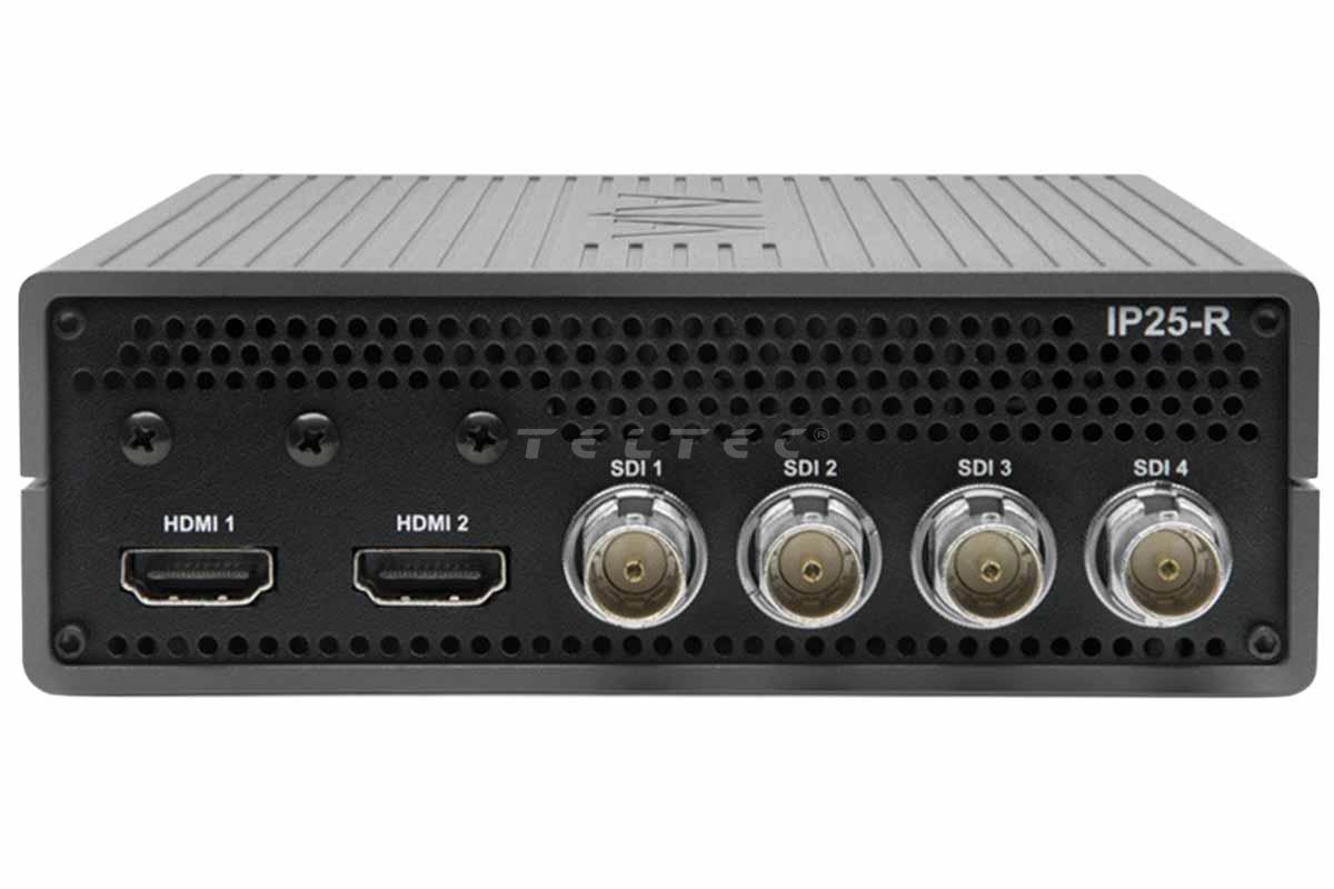 Der AJA IP25-R ist ein leistungsstarker SMPTE-ST-2110-IP-zu-12G-SDI/HDMI-Converter für professionelle Broadcast-, Produktions- und Live-Umgebungen. Mit Dual-10/25-GigE-Ports, 4x 12G-SDI- und 2x HDMI-2.0-Ausgängen liefert er latenzarme Konvertierung bis 4K DCI (4096×2160p60) und sorgt für nahtlose Integration von IP-Videonetzwerken in bestehende SDI/HDMI-Infrastrukturen.