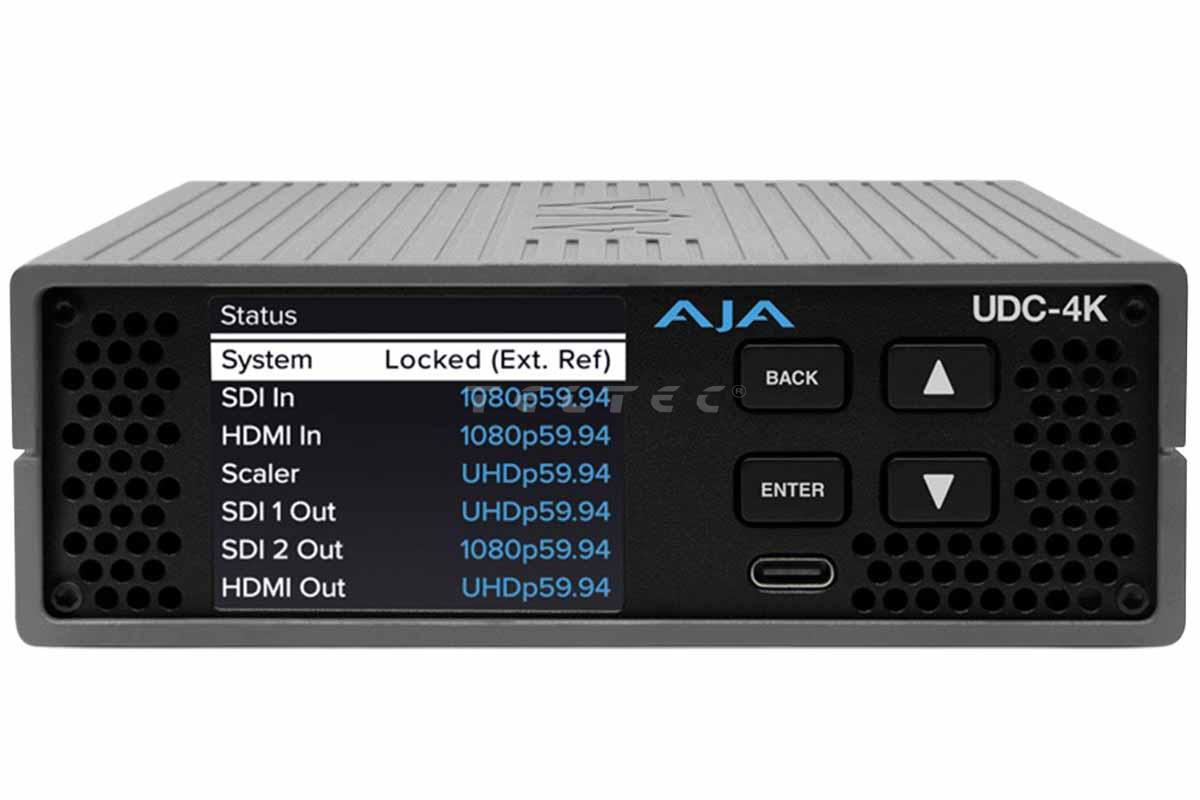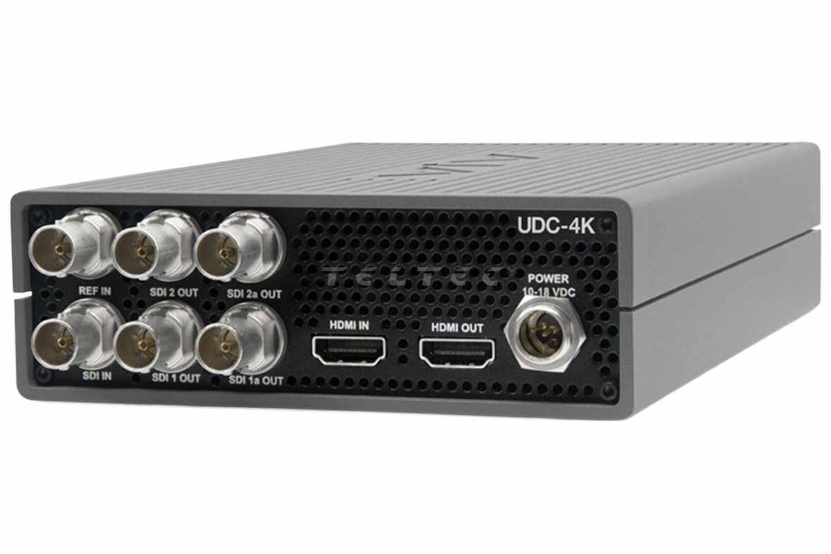 Der AJA UDC-4K ist ein robuster und vielseitiger Up/Down/Cross-Converter mit Frame-Synchronizer, der professionelle Workflows zuverlässig unterstützt. Er konvertiert zwischen 4K/UHD- und 2K/HD-Signalen, passt Bildraten an und dient zusätzlich als 1x4 12G-SDI Distribution Amplifier. Mit 12G-SDI- und HDMI-2.0-I/O, HDR-Unterstützung und EDID-Emulation bietet er maximale Flexibilität in Broadcast, Live-Produktion, ProAV und Postproduktion.