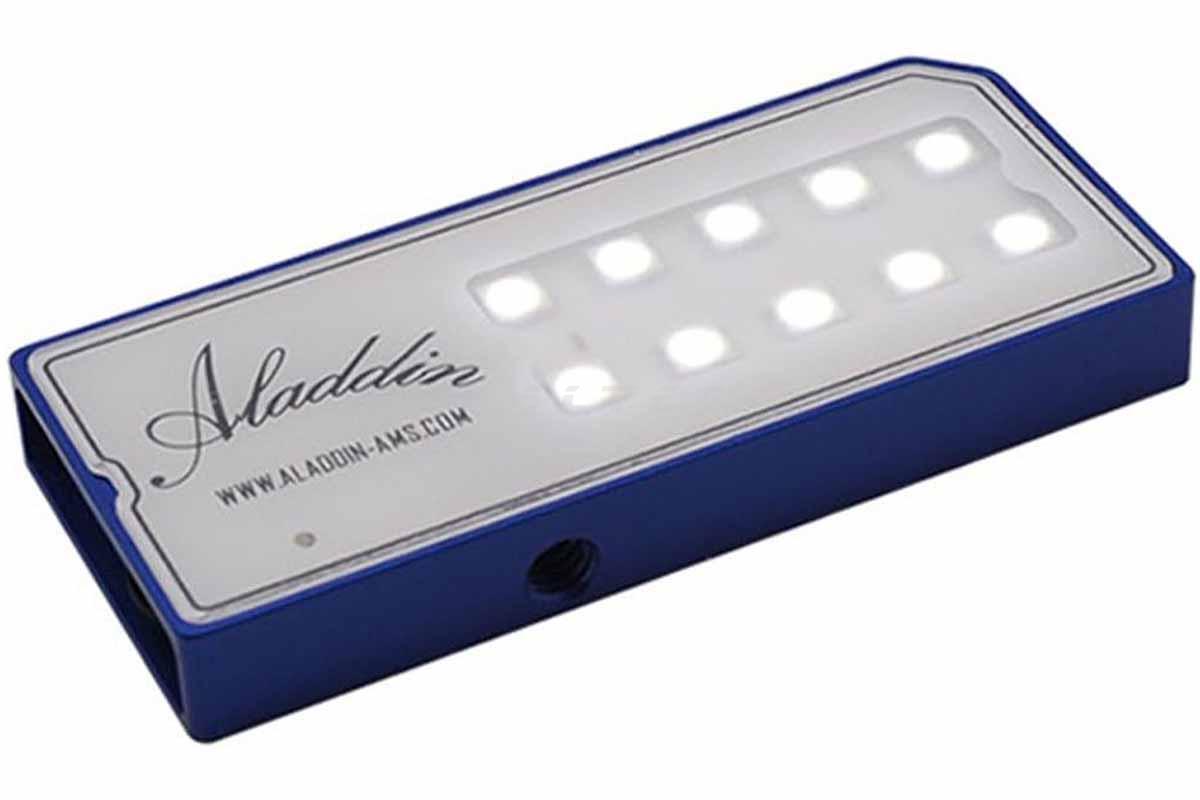 Die Aladdin Eyelite AMS-02D ist eine sehr kompakte dimmbare Tageslicht-LED-Leuchte. Die Leuchte wird via Micro-USB geladen, der integrierte Akku hält circa für zwei Stunden.