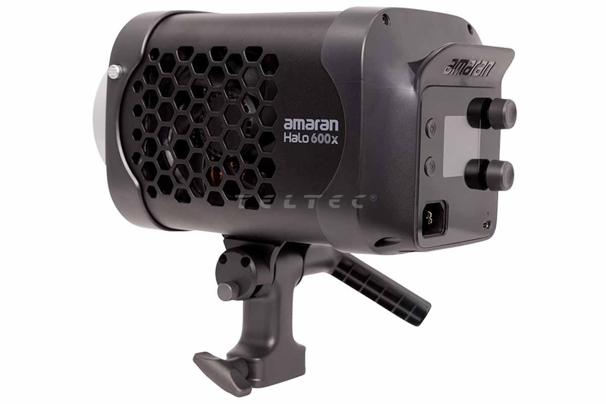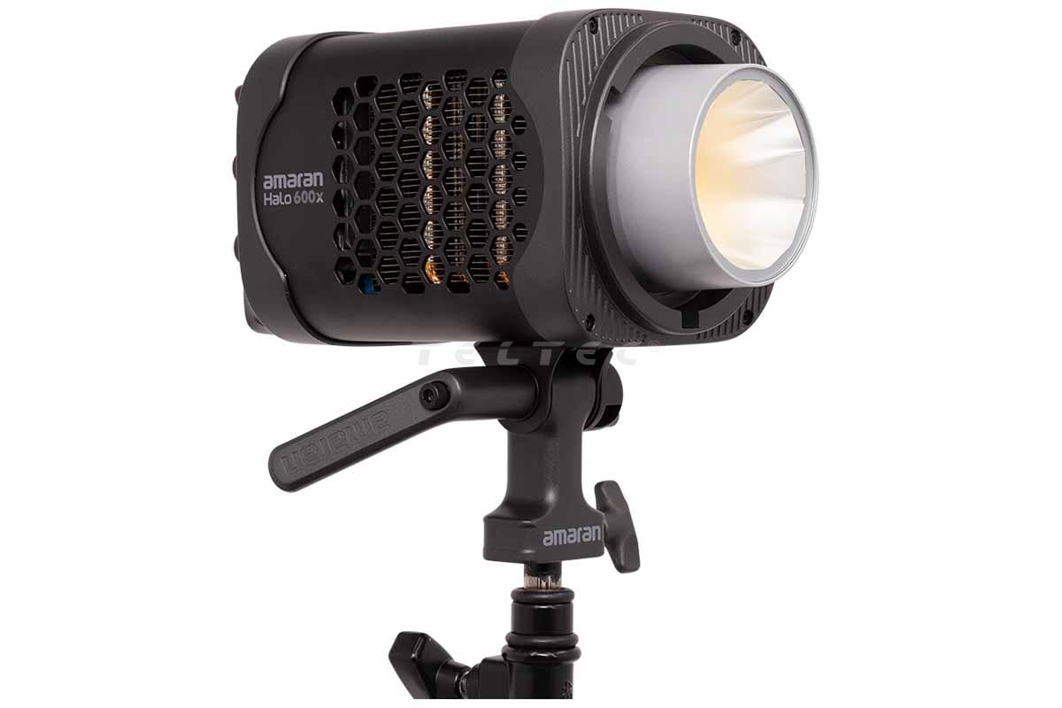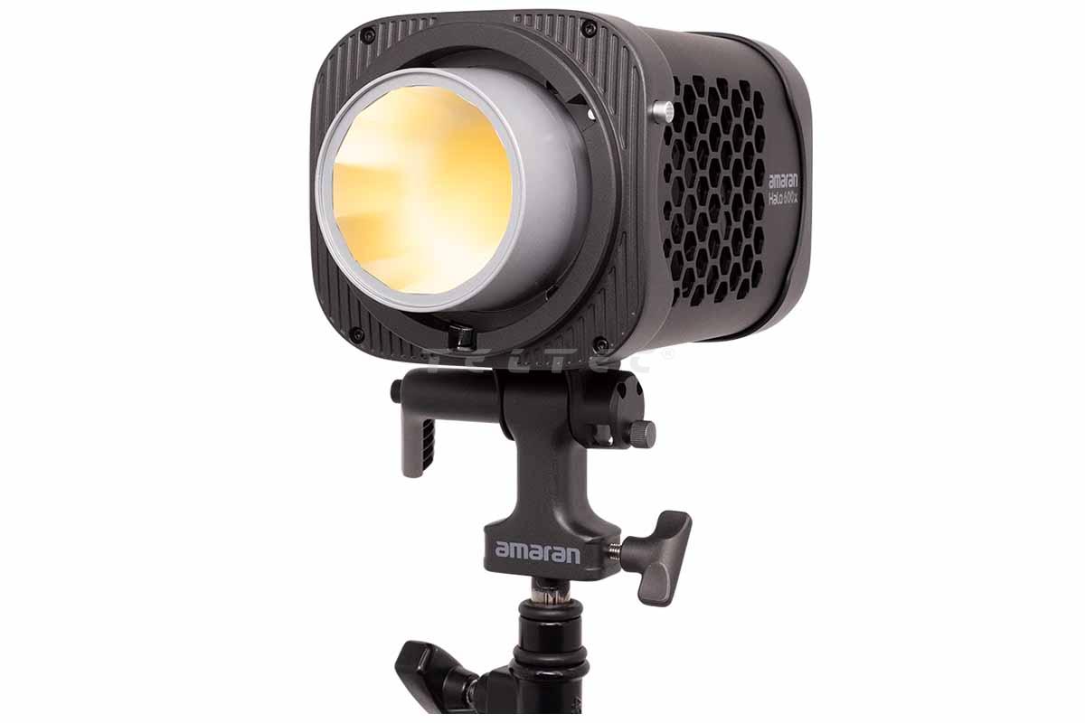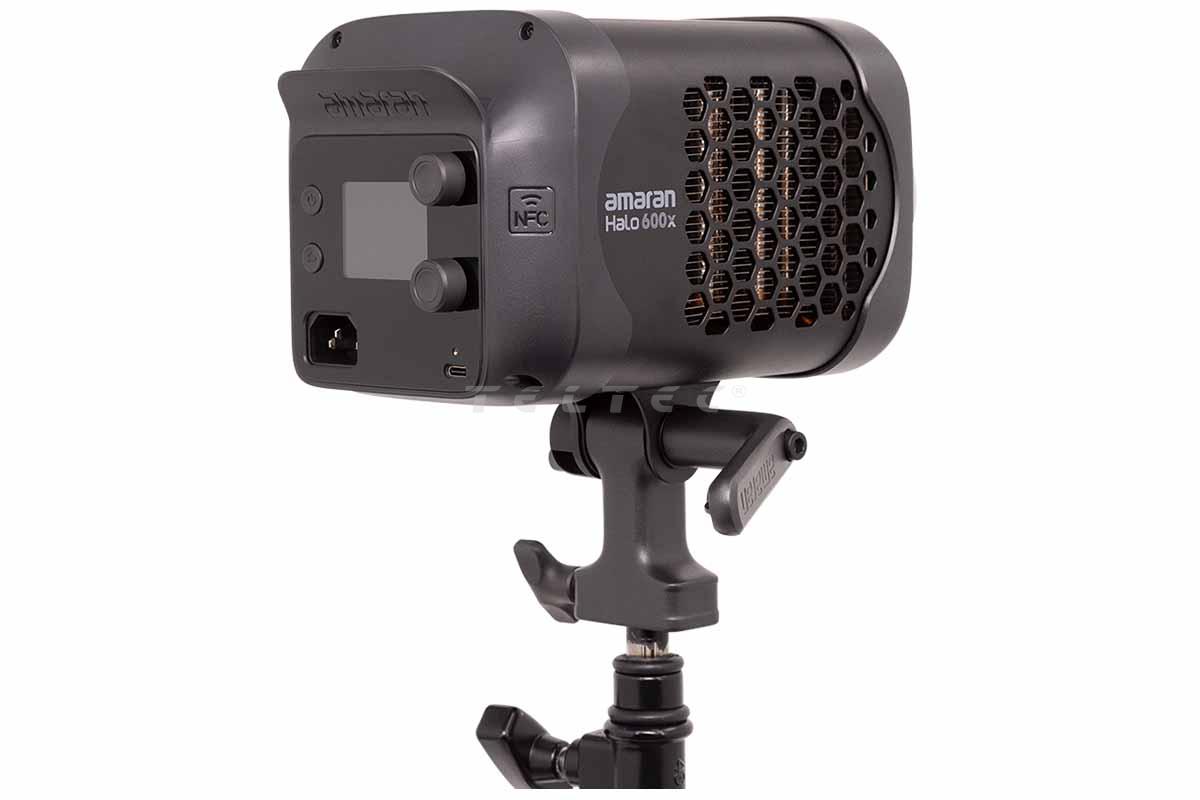 Die amaran Halo 600x ist eine kompakte, leistungsstarke 610-W-Bi-Color-COB-Leuchte in Studioqualität. Sie bietet bis zu 32.500 Lux auf 1 m (nur Leuchte) bei einem breiten Abstrahlwinkel von 85°, verbaut in einem kompakten Gehäuse. Die verstärkte Bowens-Halterung in voller Größe ermöglicht den Einsatz kompatibler Modifikatoren* für unterschiedliche Looks. Ein AC-Stromkabel für den Studioeinsatz ist im Lieferumfang enthalten. Separate Regler für Helligkeit und Farbtemperatur sowie eine übersichtliche Benutzeroberfläche sorgen für eine intuitive Bedienung. Die Kopplung mit der amaran App erfolgt bequem per NFC. Trotz der kompakten Bauweise arbeitet die Leuchte dank optimierter Kühlung besonders leise (28 dBA). Für professionelle Setups unterstützt die Halo 600x DMX-Steuerung über USB-C und lässt sich mit branchenüblichen Konsolen und Software integrieren und ist ideal für Livestream-Studios und Produktionssets geeignet.