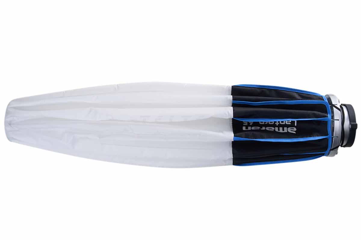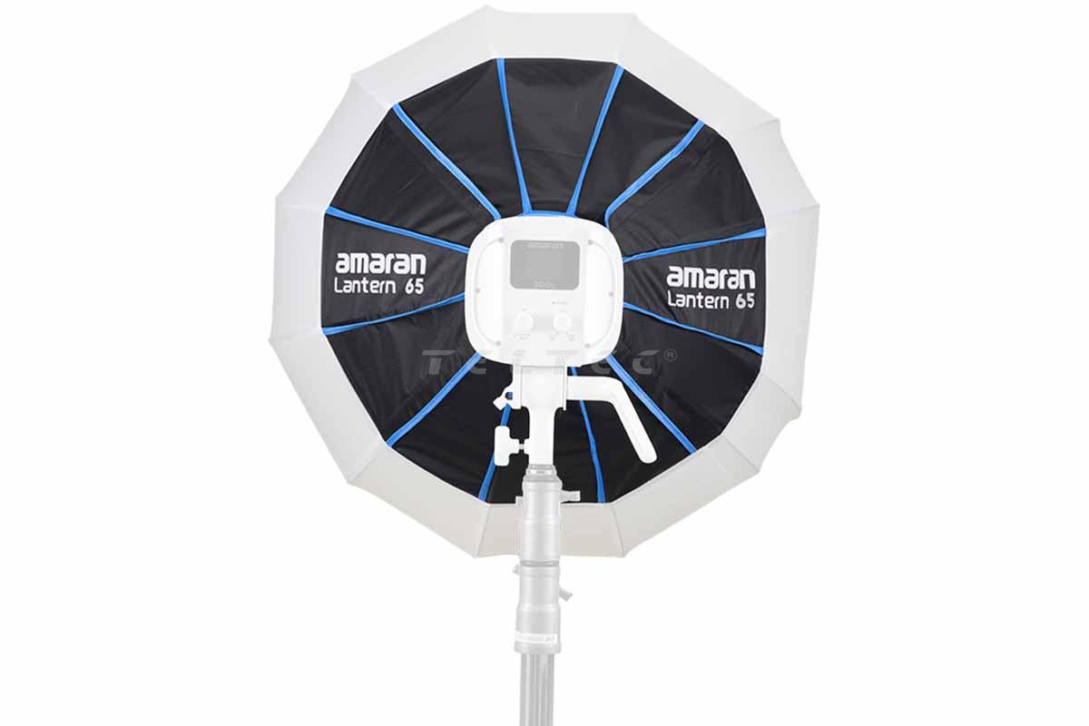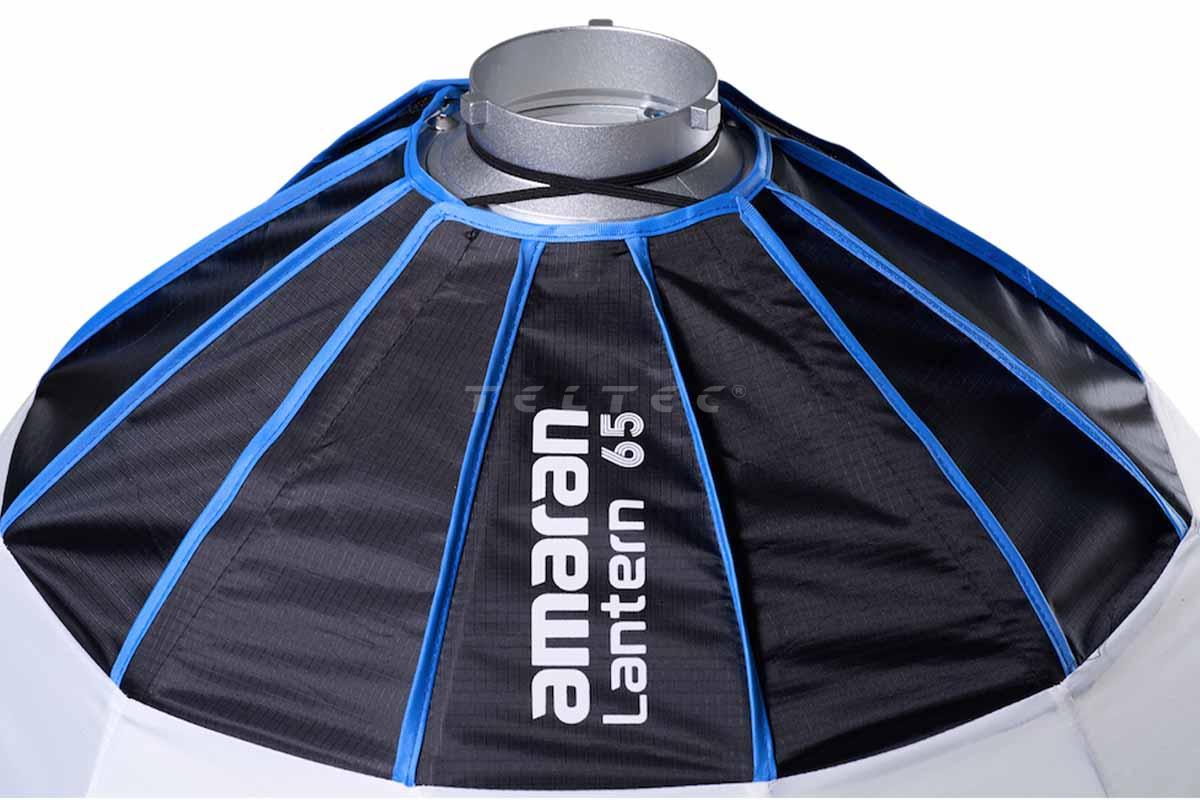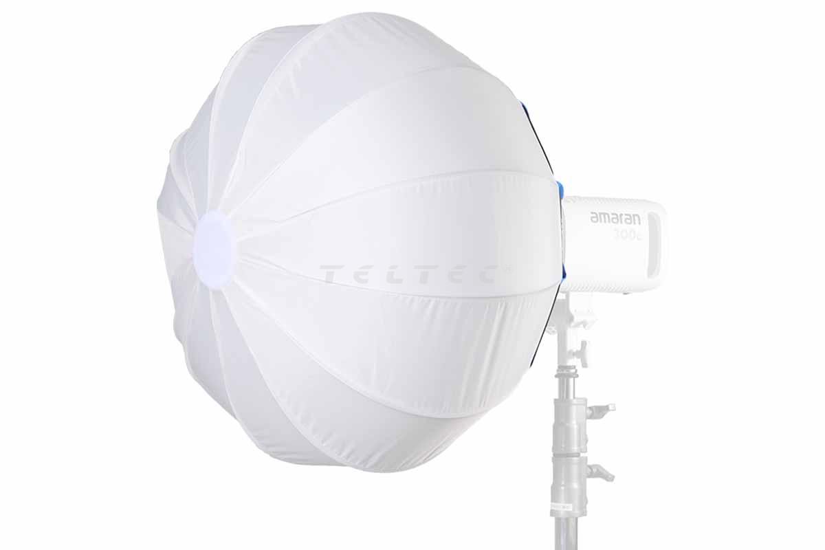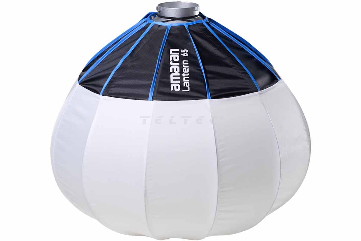 Die Amaran Lantern 65 ist ein 65cm (2ft) großer, omnidirektionaler Modifikator, der Räume mit weichem Umgebungslicht füllt. Dieser kugelförmige Lichtmodifikator ist schnell aufgebaut und verwandelt harte Punktquellen-LEDs in Sekundenschnelle in eine weiche 360°-Beleuchtungslösung für Heimstudio-Setups.
