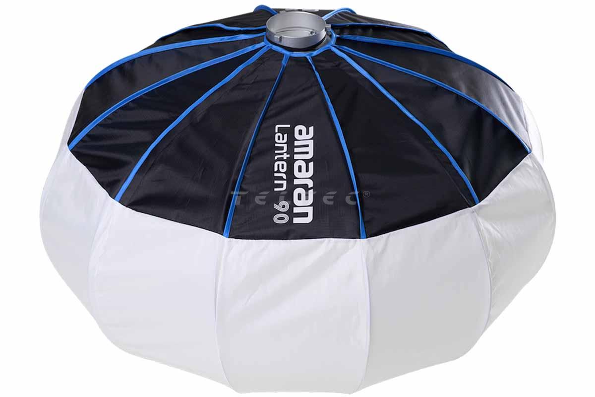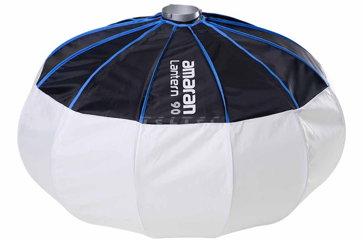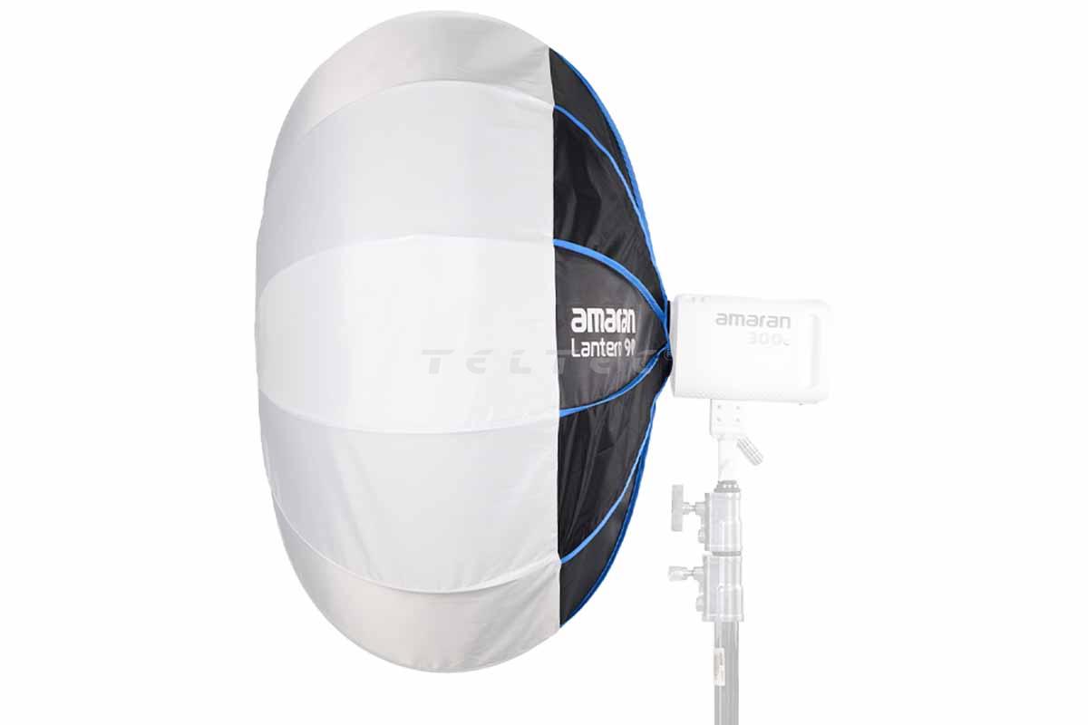 Die Amaran Lantern 90 ist ein 90cm (3ft) großer, omnidirektionaler Modifikator, der große Räume mit weichem Umgebungslicht füllt. Dieser breite, kugelförmige Lichtmodifikator ist schnell aufgebaut und verwandelt harte Punktlicht-LEDs in Sekundenschnelle in eine weiche 360°-Beleuchtungslösung mit gleichmäßigerer und größerer Reichweite für Weitwinkelaufnahmen und größere Studio-Setups.