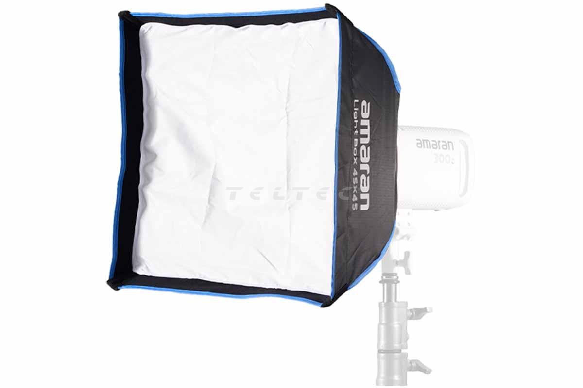 Die Amaran Light Box 45x45 ist eine 45x45cm schmale rechteckige Bowens-Mount Softbox, die für schnelle Setups entwickelt wurde. Dank des Ein-Klick-Setup-Mechanismus ist dieser Modifikator schnell und einfach zu montieren. Perfekt um harte Punktquellen-LEDs in ein weiches, lineares Licht für Content umzuwandeln. Gleichzeitig spart sie wertvollen Platz durch ihr schlankes Profil.