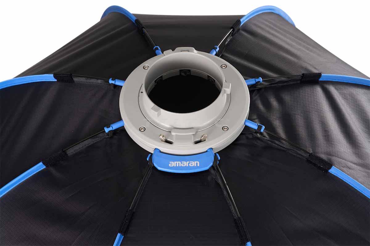 Die Amaran Octa Dome 120 ist eine achteckige 120cm Bowens Mount Softbox, die für schnelle, kompakte Setups entwickelt wurde. Dank des Ein-Klick-Setup-Mechanismus ist dieser Modifikator schnell und einfach zu montieren. Perfekt um harte Punktquellen-LEDs in ein weiches, lineares Licht für Content umzuwandeln. Gleichzeitig spart sie wertvollen Platz durch ihr schlankes Profil.