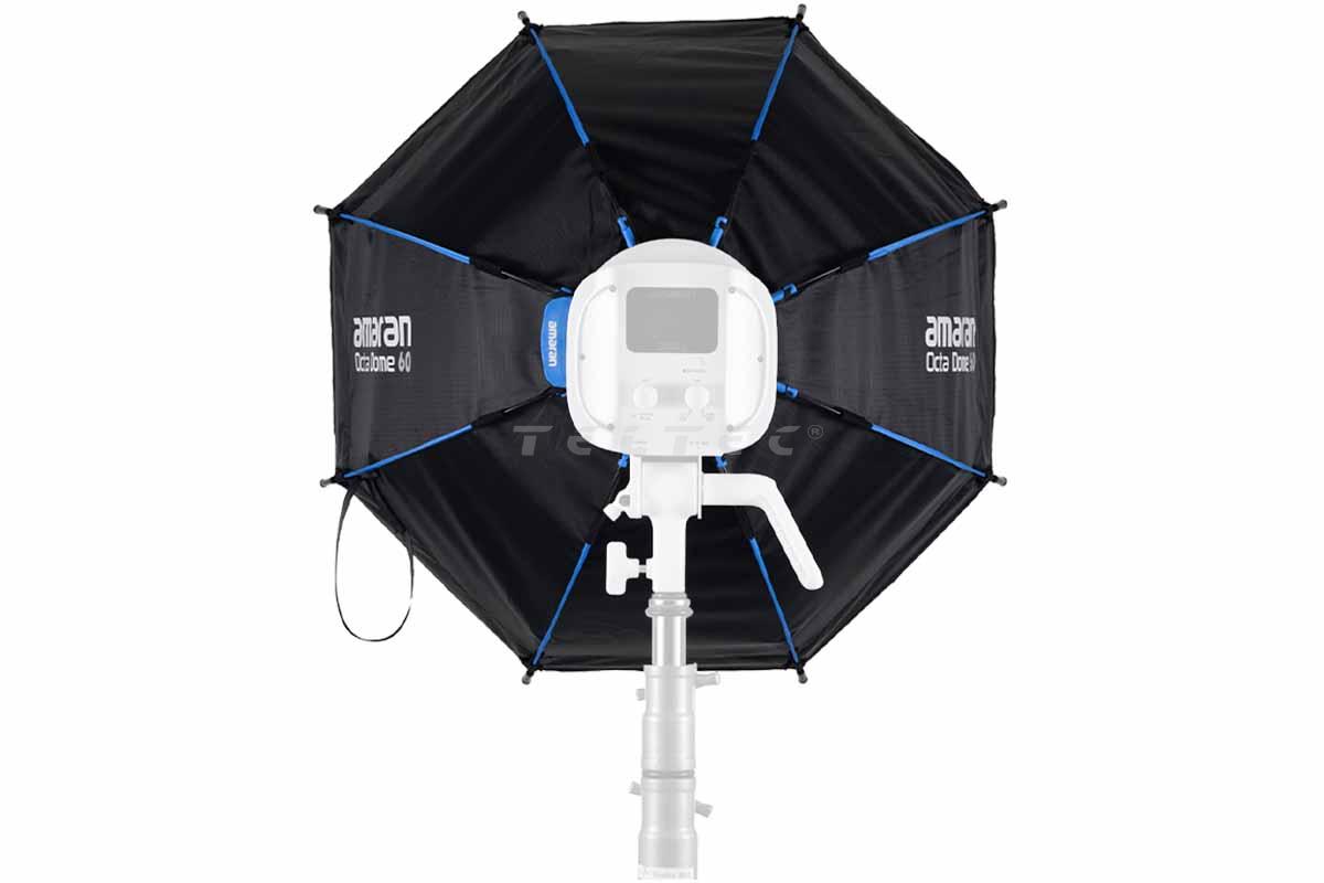Die Amaran Octa Dome 60 ist eine achteckige 60cm Bowens Mount Softbox, die für schnelle, kompakte Setups entwickelt wurde. Dank des Ein-Klick-Setup-Mechanismus ist dieser Modifikator schnell und einfach zu montieren. Perfekt um harte Punktquellen-LEDs in ein weiches, lineares Licht für Content umzuwandeln. Gleichzeitig spart sie wertvollen Platz durch ihr schlankes Profil.