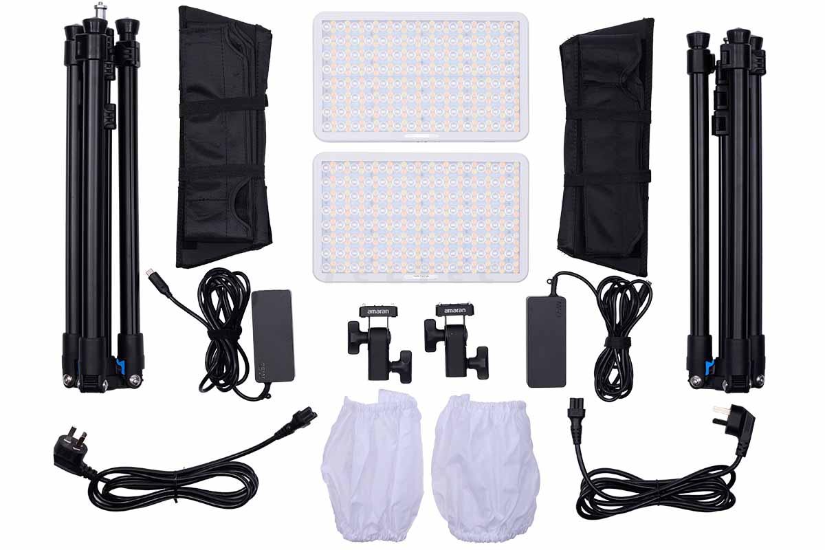 - Inklusive Softbox, Lichtsteuerungsraster, Difuser, amaran Ace Lock auf Lichtständer-Adapter, Strom Adapter, Kabel und geschützte Tragetasche für beide Lampen