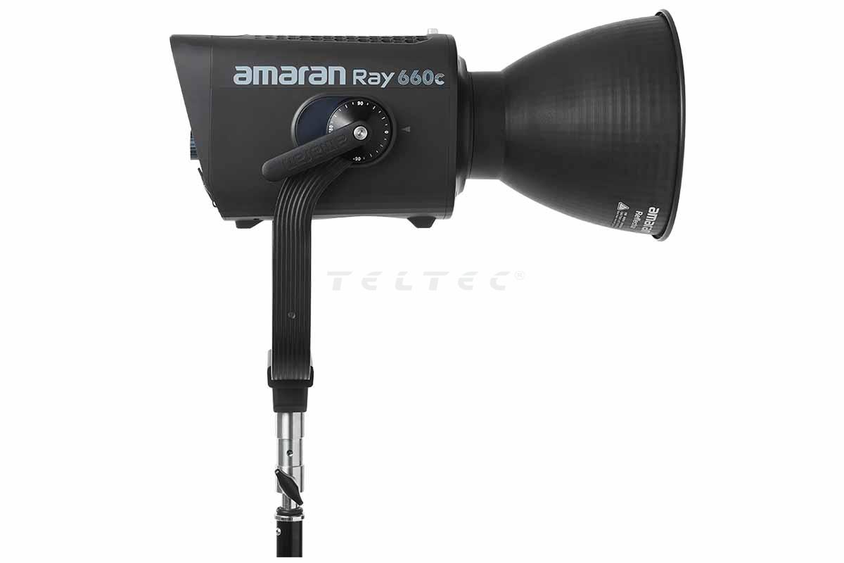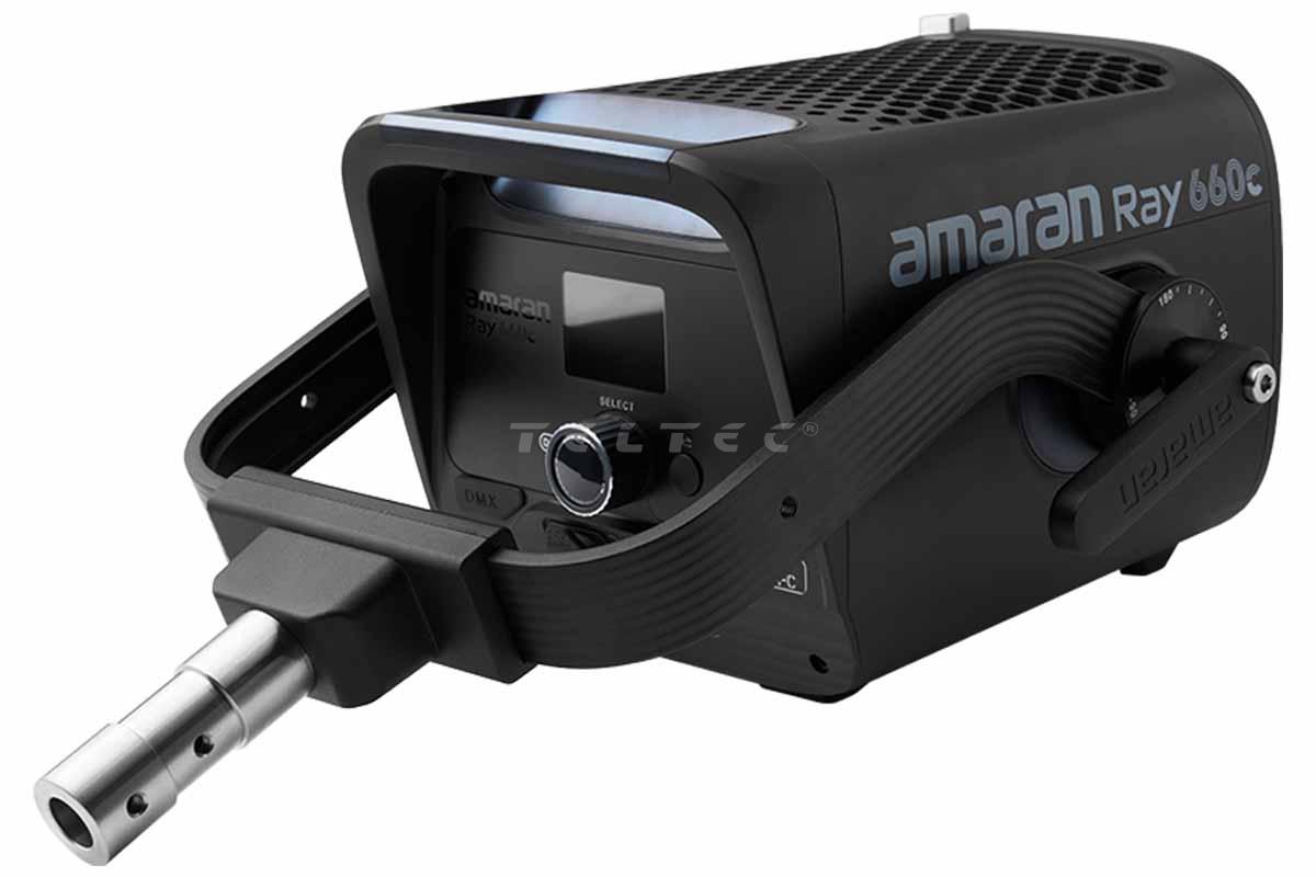 Die Amaran Ray 660c (EU) ist eine 660-W-Full-Color-COB-LED-Leuchte mit integrierter Stromversorgung und OmniColor Light Engine in einem wetterfesten IP54-Gehäuse. Sie liefert naturgetreue Farben und hohe Lichtqualität in einem kompakten Monolight-Design, das nur ein Netzkabel benötigt. Die DMX-Steuerung über USB-C macht sie ideal für professionelle Studio- und On-Set-Produktionen. Die integrierte Stromversorgung reduziert Zubehör und vereinfacht Transport und Setup. Das ausgewogene Lichtspektrum der OmniColor-Engine erzeugt realistische Farben, klare Weißtöne und präzise Hauttöne. Mit SSI-Werten von 87 (Tungsten) und 80 (D56) überzeugt die Leuchte mit konsistenter Farbwiedergabe. Mit bis zu 38.500 Lux @ 1 m bietet die Ray 660c eine beeindruckende Lichtleistung. Die Lichtausbeute kann durch den mitgelieferten Reflektor gesteigert werden. Optionales Zubehör wie Fresnel-Linsen* und Bowens-Mount-Softboxen* erweitert die kreativen Einsatzmöglichkeiten. Über den optionalen USB-C auf 5 Pin DMX Adapter* lässt sich die Leuchte nahtlos in professionelle DMX-Workflows integrieren. Der FlowTurn Drehregler ermöglicht schnelle oder präzise Anpassungen. In der amaran App lassen sich einzelne oder mehrere Leuchten bequem steuern, inklusive NFC-Kopplung.
