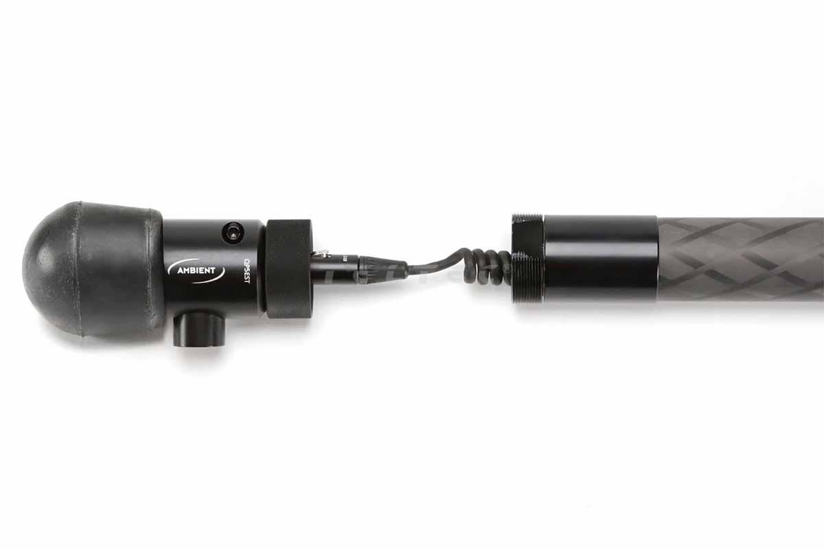 Das Ambient QP Slim Short with straight cable, mono ist eine Tonangel mit gerader Innenverkabelung und seitlichem Kabelauslass. Die Tonangel ist aus Karbon-Verbundstoff gefertigt und aufgrund ihres geringen Durchmessers von nur 3 Zentimetern sehr angenehm zu halten. Darüber hinaus verfügt die Tonangel über 4 Segmente, sodass sich diese gegenüber des Vorgängers der QS-Serie, durch ein leichteres Design auszeichnet. Die Verschlüsse sind so konzipiert, das eine Vierteldrehung nun vollständig ein seitliches Verdrehen verhindert. Die QuickPole Slim Short bietet eine Verlängerung von 100 cm bis 330 cm und wiegt ca. 550 g.