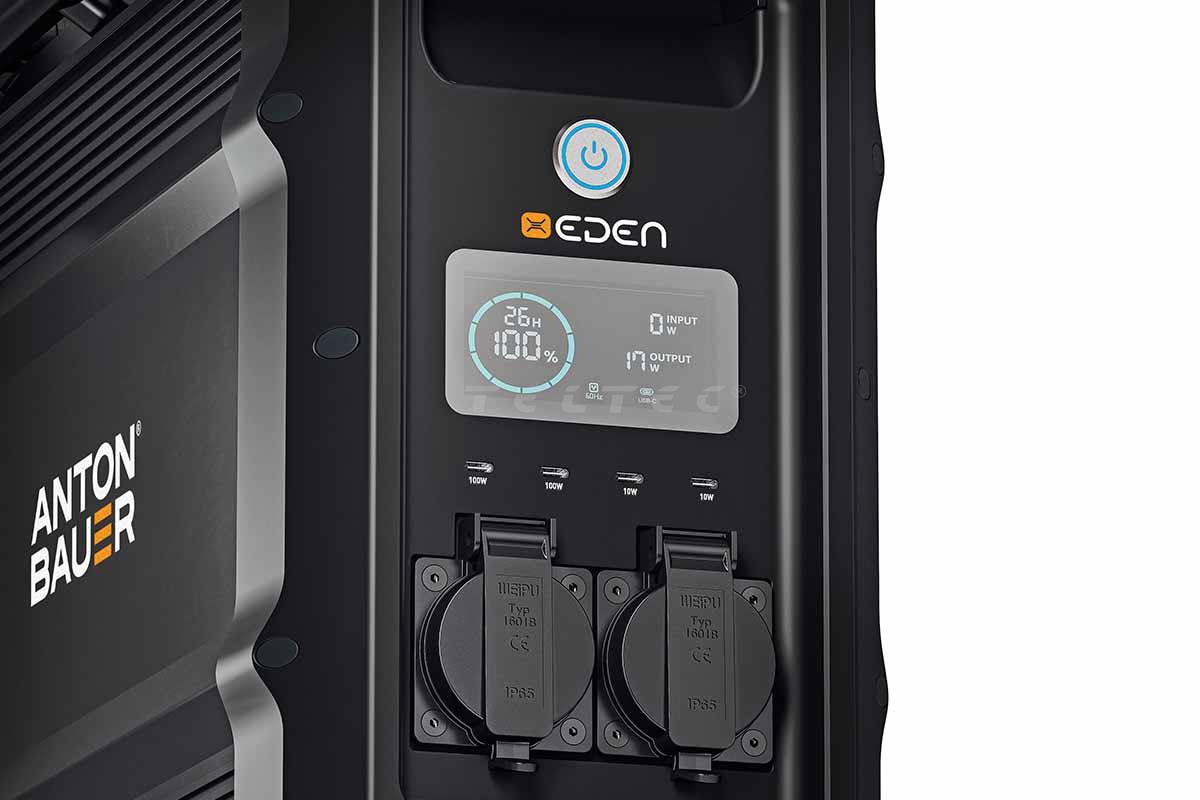 Die Anton Bauer EDEN 2.5kWh ist eine mobile 2,5-kWh-Stromversorgungseinheit, die für die anspruchsvollsten Anwender in der Film-, Fernseh- und Outdoor-Branche entwickelt wurde. Mit seiner robusten, staub- und wasserdichten Bauweise liefert EDEN überall zuverlässige AC- und DC-Stromversorgung. Schnelles Aufladen, mehrere Ausgangsoptionen und geräuschloser Betrieb sorgen dafür, dass die Geräte immer mit Strom versorgt sind und die Kreativität ungehindert fließen kann.