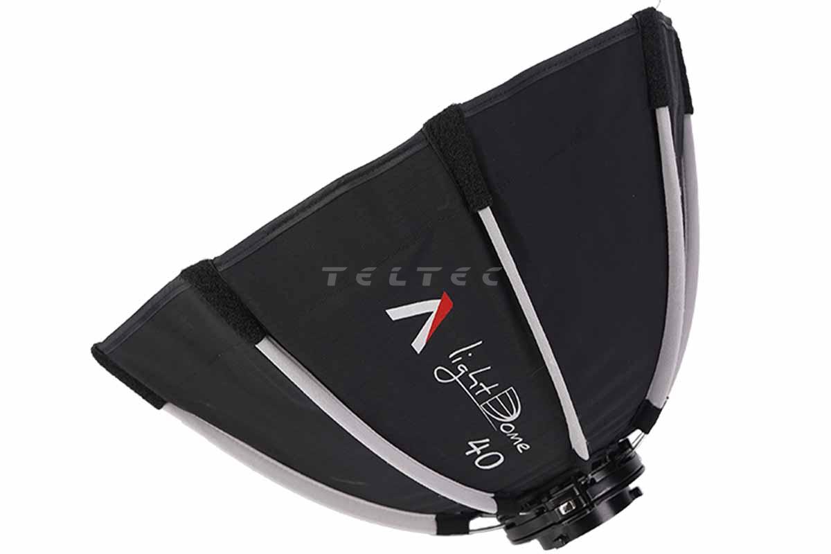 Die Aputure Light Dome 40 ist eine runde Mini-Softbox mit einem Diffusor von 40 cm Durchmesser. Sie ist mit einem Mini ProLock Mount zur Befestigung an der STORM 80c ausgestattet. Die faltbare Struktur der Light Dome 40 ist so konzipiert, dass sie schnell zusammengebaut und ebenso schnell zur Aufbewahrung zusammengeklappt werden kann.