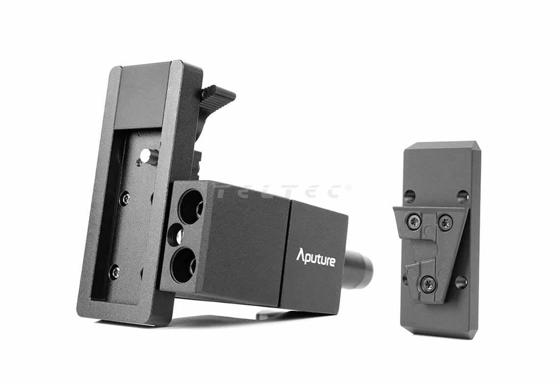 Die Aputure Quick Release Clamp wurde konzipiert umd Steuerboxen oder Stromquellen sicher an Lichtstativen anzubringen.