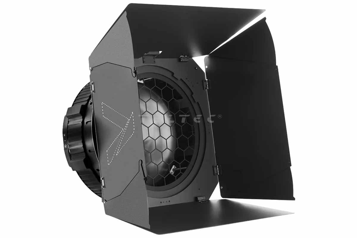 Motorisierte Fresnel-Linse (18–50°) für XT52 inkl. Barn Doors & Rolling Case