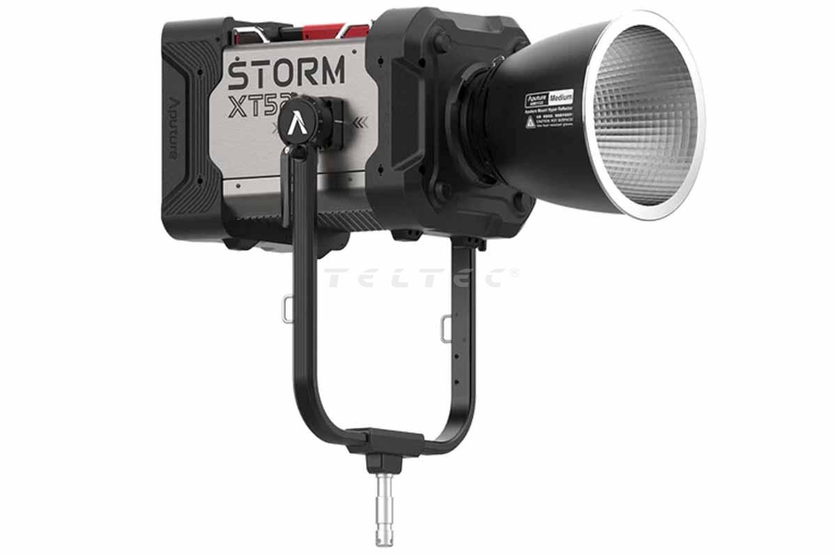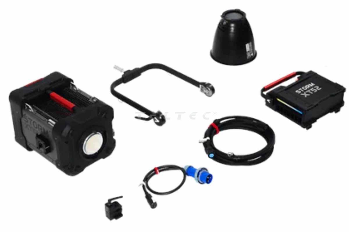 Die Aputure Storm XT 52 (EU CEE 32A) ist ein 5.200 W einstellbares LED-Spotlight mit BLAIR-Light-Engine. Die STORM XT52 ist die hellste LED-Punktlichtquelle der Branche: 41.900 Lux bei 5 m mit einem 35°-Reflektor. Dies übertrifft die Helligkeit eines 6.000W HMI-Scheinwerfers. Die BLAIR (Blue/Lime/Amber/Indigo/Red)-Light-Engine der Aputure STORM XT52 liefert hochwertiges weißes Licht mit großem CCT-Bereich und einer +/- grünen Einstellbarkeit. Die Indigo-Emitter des BLAIR-Chipsatzes verstärken fluoreszierende Materialien wie natürliches Tageslicht und Kunstlichtquellen. Die revolutionäre BLAIR-Light-Engine ist außerdem in der Lage, gesättigte Farben über mehr als 70 % des Rec.2020-Farbraums auszugeben, indem sie die Modi Limited HSIC+ und x,y-Steuerung verwendet. Die STORM XT52-Lampenkopf wiegt 27,7 kg und kann von einer Person angehoben und mit einem Standard-Kurbelstativ bedient werden. Die tragbare XT52-Steuerungsbox hat die Größe einer Aktentasche und wiegt nur 13 kg. Die STORM XT52 ist über das gesamte System hinweg wettergeschützt (IP65), von der Steuereinheit über die Kabel bis zum Lampenkopf und sogar den Modifikatoren. Der Scheinwerfer nimmt bei voller Leistung 5.200 W auf, was bedeutet, dass er mit gängigen 6.500-W-Generatoren betrieben werden kann.