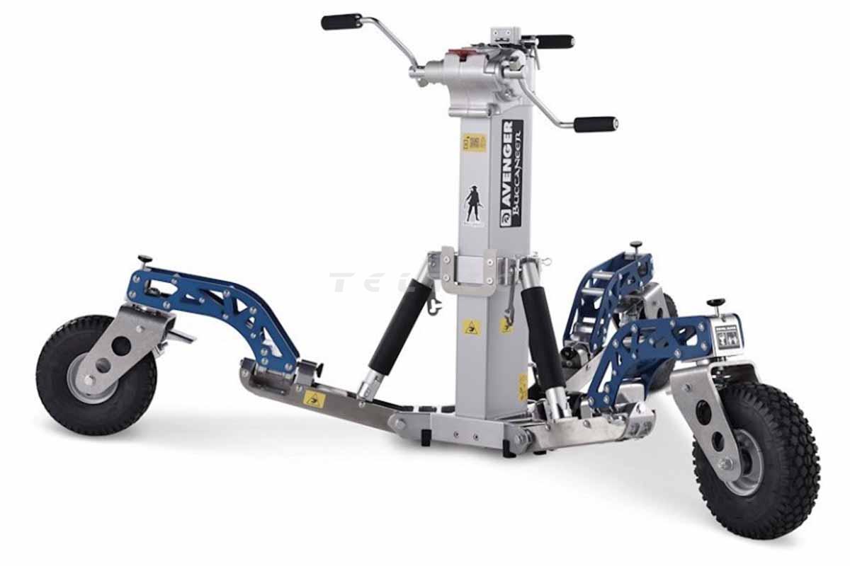Das Avenger B7030FF Buccaneer Stativ 3 m ist ein revolutionäres Schwerlaststativ für Filmscheinwerfer, das als Antwort auf die Nachfrage der Industrie nach einem Wind-Up-Stativ mit niedriger Ladehöhe und TÜV-Zertifizierung entwickelt wurde und eine Maximalhöhe von 3 m erreicht. Die hohe Traglast (80 kg) wird durch zwei einzigartige Schlüsselmerkmale erreicht: erstens die nach hinten klappbare Basis und zweitens die bundlose Säule aus mehreren Segmenten. Die Kombination dieser beiden Merkmale ermöglicht es, das Stativ in einer Höhe von nur 92,5 cm mit einer Leuchte zu bestücken. Damit ist es das weltweit am tiefsten zu beladende Wind-Up-Stativ mit einer maximalen Höhe von 3 m. Sobald die Lampe angebracht ist, kann die Basis des Stativs mithilfe der drei Nivellierfüße, die auch geringe Bodenunebenheiten ausgleichen, sicher in den Betriebsmodus versetzt werden.
