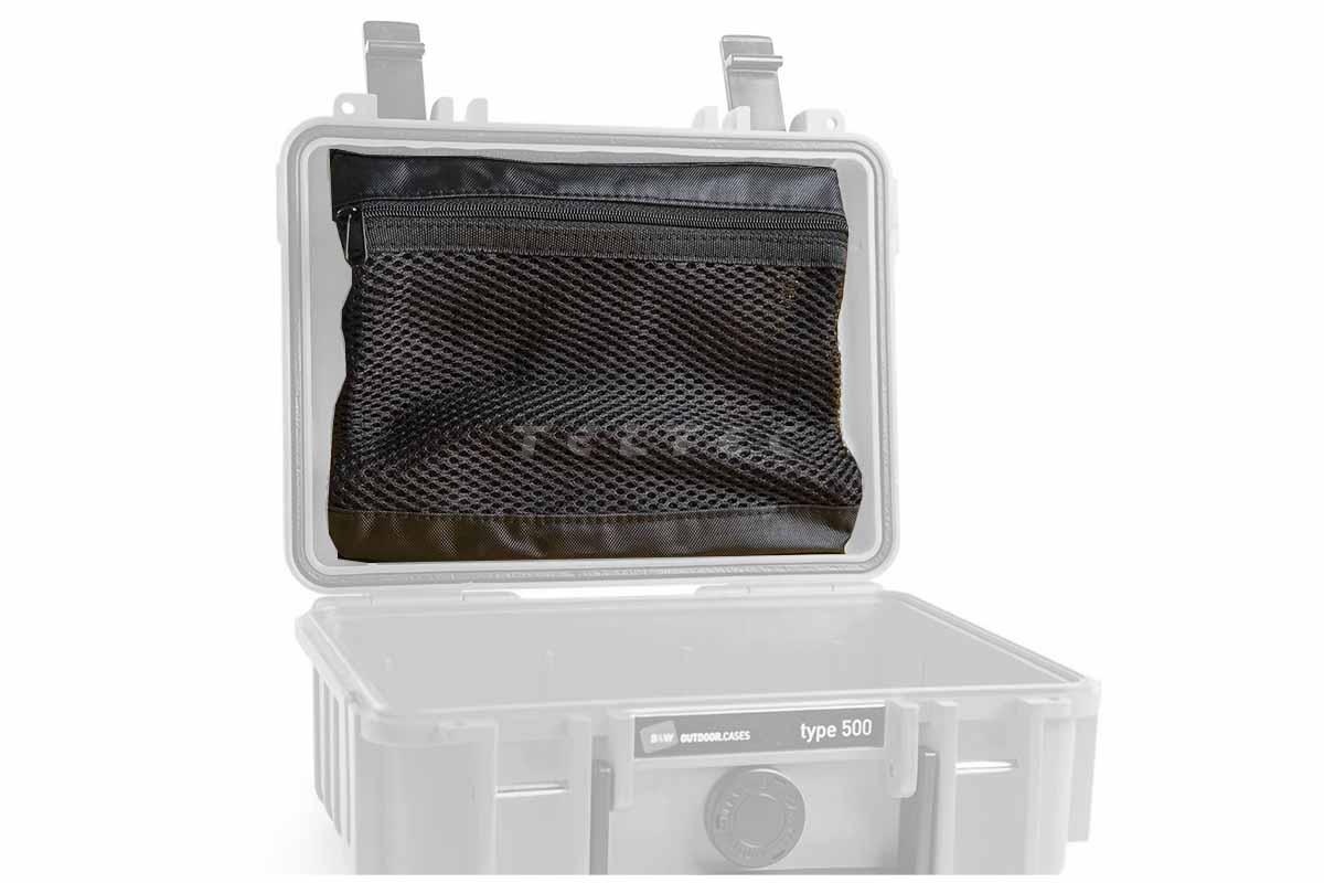 Die B&W MB/500 ist eine praktische Netz-Deckeltasche für die B&W Outdoor Cases vom Typ 500. Die Deckeltasche bietet zusätzlichen Stauraum im Deckelbereich und schont auch die Ausrüstung, da Kleinteile nicht im Koffer herumfliegen.
