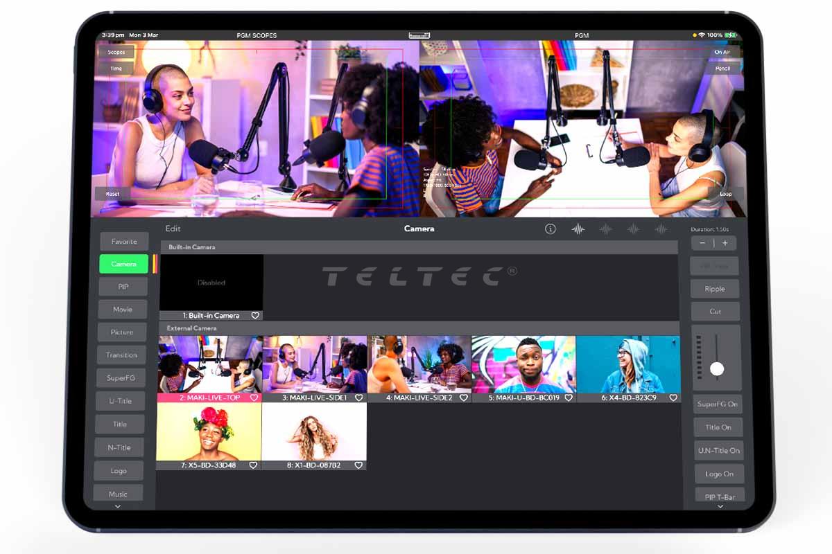 - Bedienfeld für haptische Steuerung, zum Umschalten zwischen den Kameras, für Übergänge