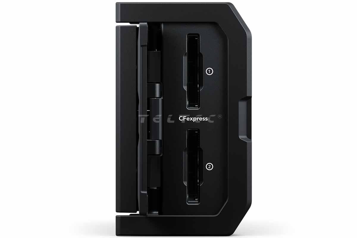 - Zwei CFexpress Typ B-Kartensteckplätze für parallele oder Hot-Swap-Aufnahme