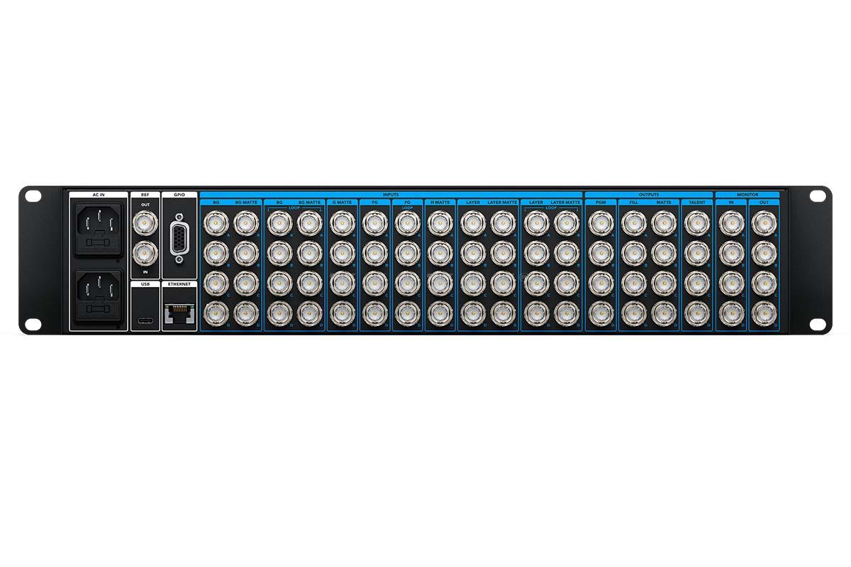 4 x 12G-SDI Zur Bildkontrolle von Programm, Vordergrund-Eingabe, Hintergrund-Eingabe, kombinierter Matte, interner Matte, Fill Out, Ebenen-Eingabe, Hintergrund-Matten-Eingabe, Garbage-Matten-Eingabe, Holdout-Matten-Eingabe, Ebenen-Matten-Eingabe, verarbeiteter Ebenen-Matte, verarbeiteter Holdout-Matte, verarbeiteter Garbage-Matte, verarbeiteter Hintergrund-Matte und Bildschirmkorrektur |