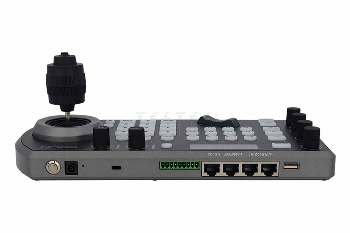 - Dreiachsiger Joystick für Schwenken, Neigen und Zoomen