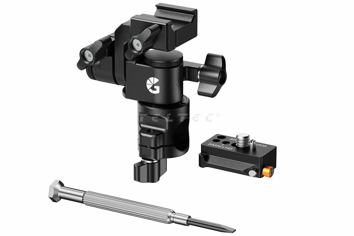 Das Bright Tangerine B3001.0011 Universal Monitor Mount QR Kit (NATO Top, 15mm Rod Base) ist eine Universal-Monitorhalterung mit einer NATO-Klemme an der Ober- und einer 15-mm-Stangenaufnahme an der Unterseite. Der Schwenk-Neige-Mechanismus sorgt für eine sichere Positionierung, während die NATO-Klemme den Monitor schnell entriegelt. Die mitgelieferte NATO-Schiene wird an der Unterseite des zu befestigenden Monitors angebracht, sodass diese auf jedes Standard-NATO-Zubehör montiert werden kann.