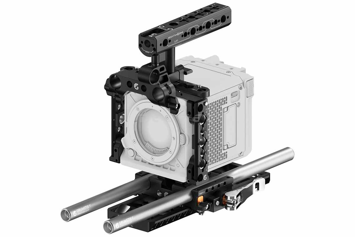 Das Bright Tangerine B4002.0026 Base Kit for RED KOMODO-X umfasst, neben den NATO-Schienen und der Top Plate für das Kameragehäuse der RED KOMODO-X, die LeftField Mini 15-mm-LWS-Baseplate und einen Riser, der die Kamera auf die richtige Höhe bringt. Mittels Bright Tangerine's Open-Up-System lässt sich die Kamera auf jede ARRI-Standard-Schwalbenschwanzplatte schnell auf- oder abnehmen. sodass ein Setup-Wechsel problemlos möglich ist. Zum Ausbalancieren der Kamera auf längeren Platten kann die Basisplatte halb geöffnet und verschoben werden. Mit der LeftField-Mini-Riser-Kombination wird die KOMODO-X auf die 15-mm-LWS-Standardhöhe gebracht, sodass Zubehör wie Matteboxen oder Follow-Focus-Systeme montiert werden können. Die seitlichen Schienen verfügen über 1/4"- und 3/8"-Gewindebohrungen, die zur Zubehörmontage dienen, während QD-Buchsen und integrierte NATO-Schienen als Schnellwechselkomponenten integriert sind.