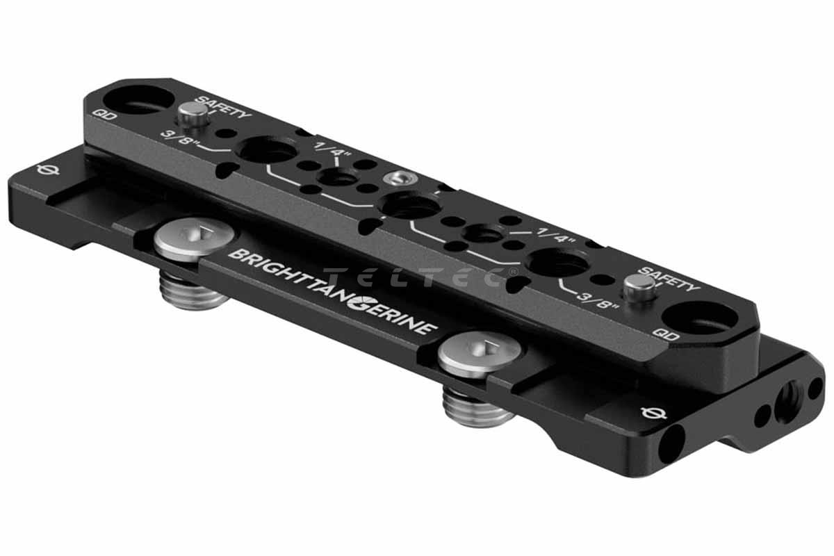 Die Bright Tangerine B4009.1003 Fujifilm GFX ETERNA NATO Top Plate (Front) ist eine Top Plate, die an der Vorderseite der Fujifilm GFX Eterna Kamera montiert wird und eine Vielzahl an Befestigungsoptionen bietet, zu denen 1/4"- und 3/8"-Gewinde, QD-Buchsen und eine integrierte NATO-Schiene zählen. Die NATO-Schiene hat eine Ausrichtkugel, um das Zubehör mittig in der Schiene zu positionieren und bietet einen Verstellbereich von 70 mm zur individuellen Anpassung des Kamera-Rigs.