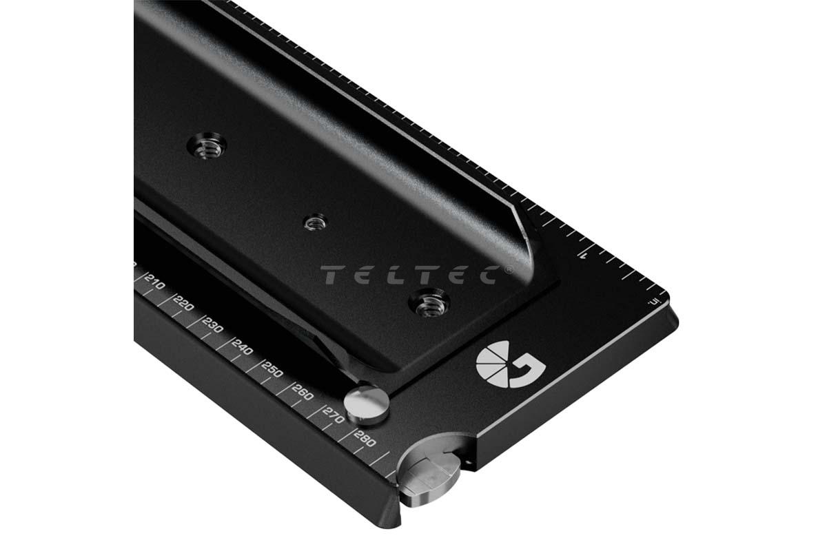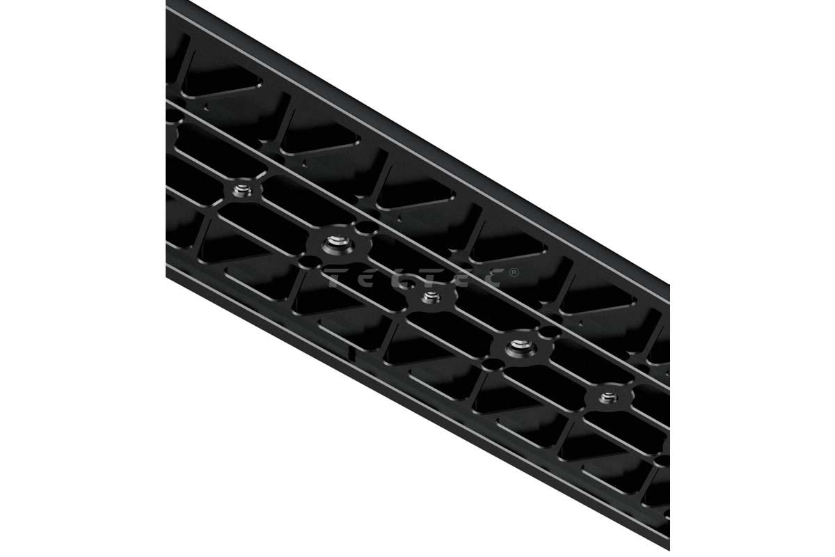- 3/8″ und 1/4″ Gewinde, die über die gesamte Länge des Schwalbenschwanzes verteilt sind