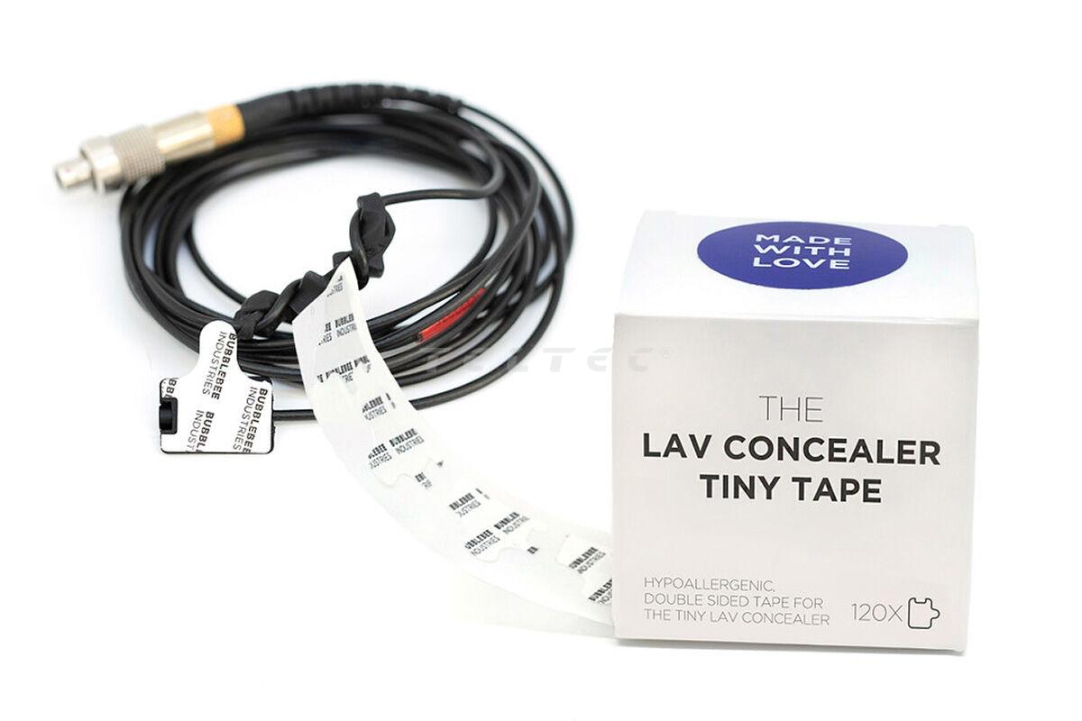 Das Bubblebee The Lav Concealer Tiny Tape ist ein Set aus 120 doppelseitigen transparenten Klebepads für kleine Lav Concealer, die sich zum versteckten Einbau von Lavaliermikrofonen eignen. Das Tape bietet einen starken Halt auf der Haut und kann rückstandslos entfernt werden.