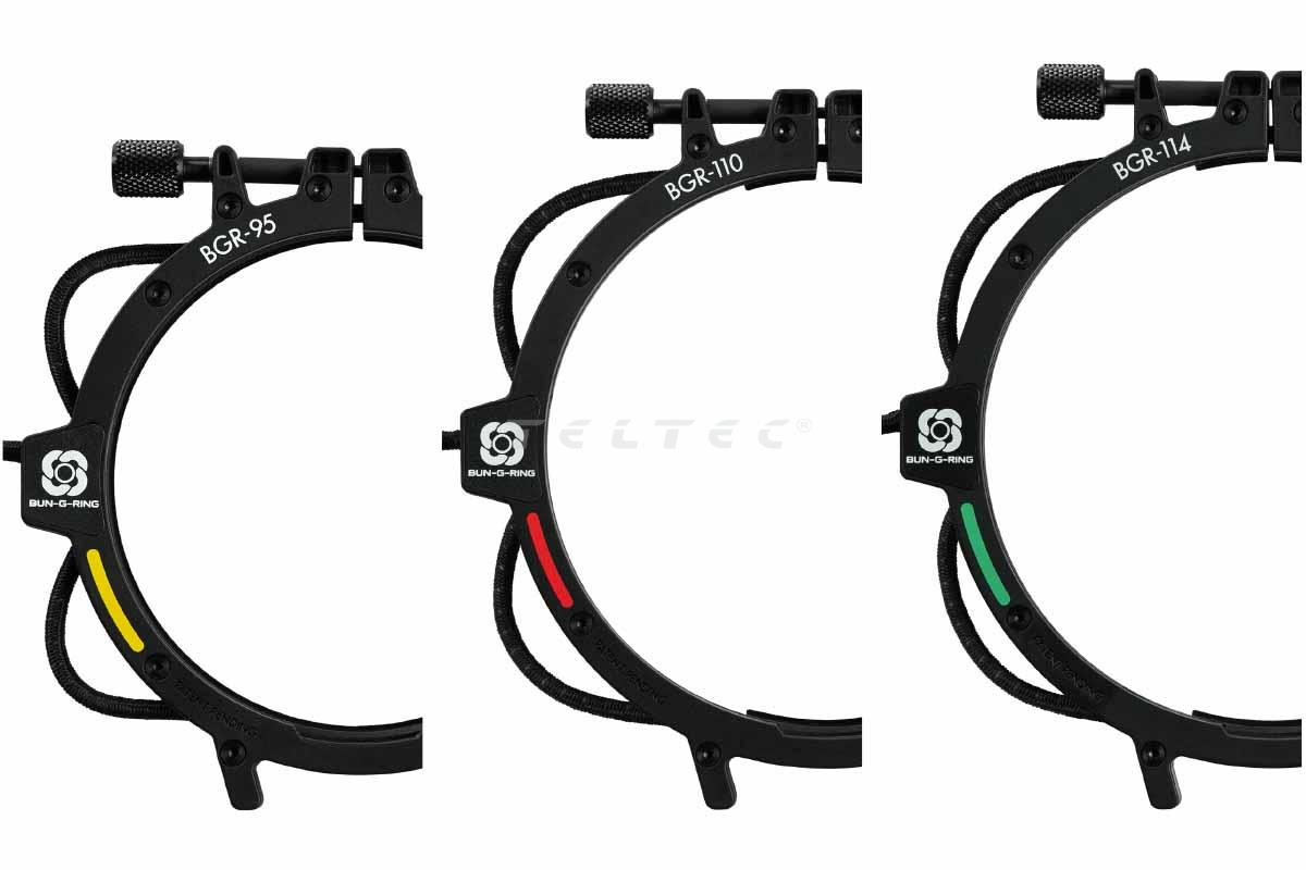 Das Bun-G-Ring Standard Kit ist ein 3er-Set Filterhalterungen mit Bungee-Seil-System. Ein Bun-G-Ring kann auf ein Objektiv entsprechender Größe montiert werden, um dann Filter aufnehmen und mittels Bungee-Seil an allen Ecken zu sichern. Dieses Kit beinhaltet drei dieser Ringaufsätze für drei verschiedene Objektivgrößen, diverse Adapter für weitere Größen sowie Einschübe gegen ungewollten Lichteinfall. Die verschiedenen Größen sind farbcodiert und kommen in gelb, rot und grün. Gelb umfasst in diesem Set einen Bun-G-Ring für 95-mm-Objektive sowie zwei Adapter für 95-auf-80 und 95-auf-87. Rot umfasst den Ring für 110-mm-Objektive und einen 110-auf-104-mm Adapter sowie zwei Lichtschutzeinschübe für 4x4"- und 4x5.65"-Filter. Grün umfasst einen Ring für und auch zwei zu dieser Größe passende Lichtschutzeinschübe für 4x4"- und 4x5.65"-Filter. Außerdem sind auch noch Taschen im Paket enthalten - Je eine farbcodierte Hülle mit Platz für einen Ring und einen 4x5.65"-Filter sowie eine graue Hülle für das restliche Zubehör, und ein Beutel, der dann alle bestückten Hüllen aufnehmen kann und zusätzlichen Schutz sowie einen einfacheren Transport bietet.