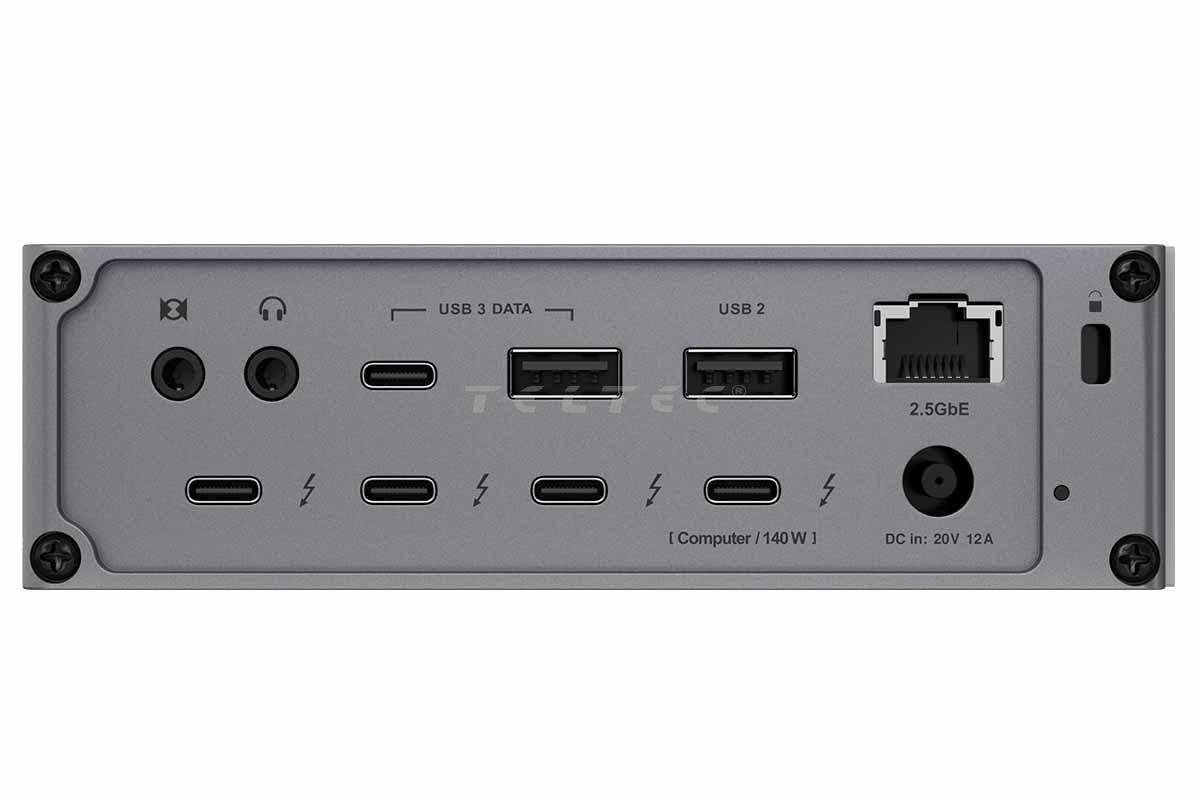 | Schnittstellen | 1 x Thunderbolt 5 Host (Up to 120Gb/s) 3 x Thunderbolt 5 (80Gb/s) 3 x USB-C (10Gb/s) 1 x USB-A (10Gb/s) 1 x USB-A (480MB/s) 1 x SD 4.0 (UHS-II) 1 x microSD 4.0 (UHS-II) 1 x 2.5 Gigabit Ethernet 1 x Front Combo Audio In/Out (3.5mm) 1 x Rear Audio Out (3.5mm) 1 x Rear Audio In (3.5mm) 1 x DC In (20V 12A) |