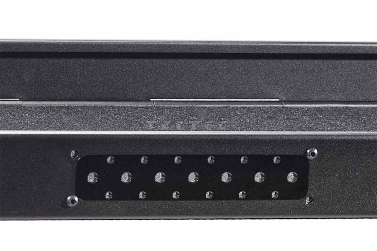 Die Conecarts Gewindeplatte mit 7 Gewindebohrungen 3/8" und 12 Gewindebohrungen 1/4" dient dem Befestigen von weiterem Zubehör am Rocket Wagen.