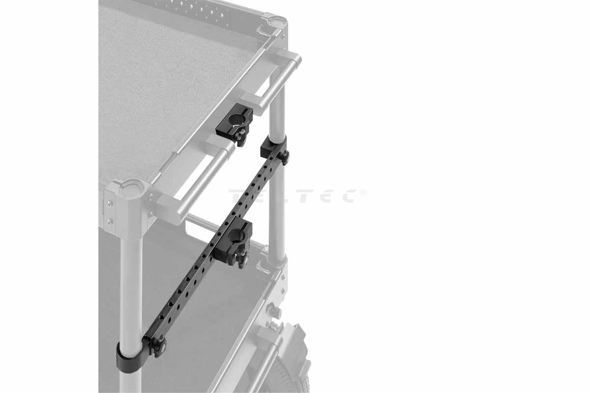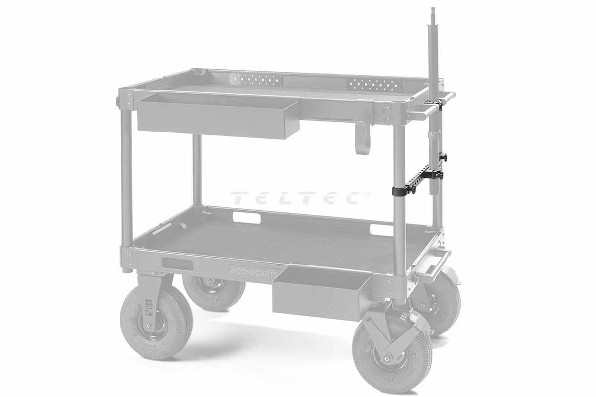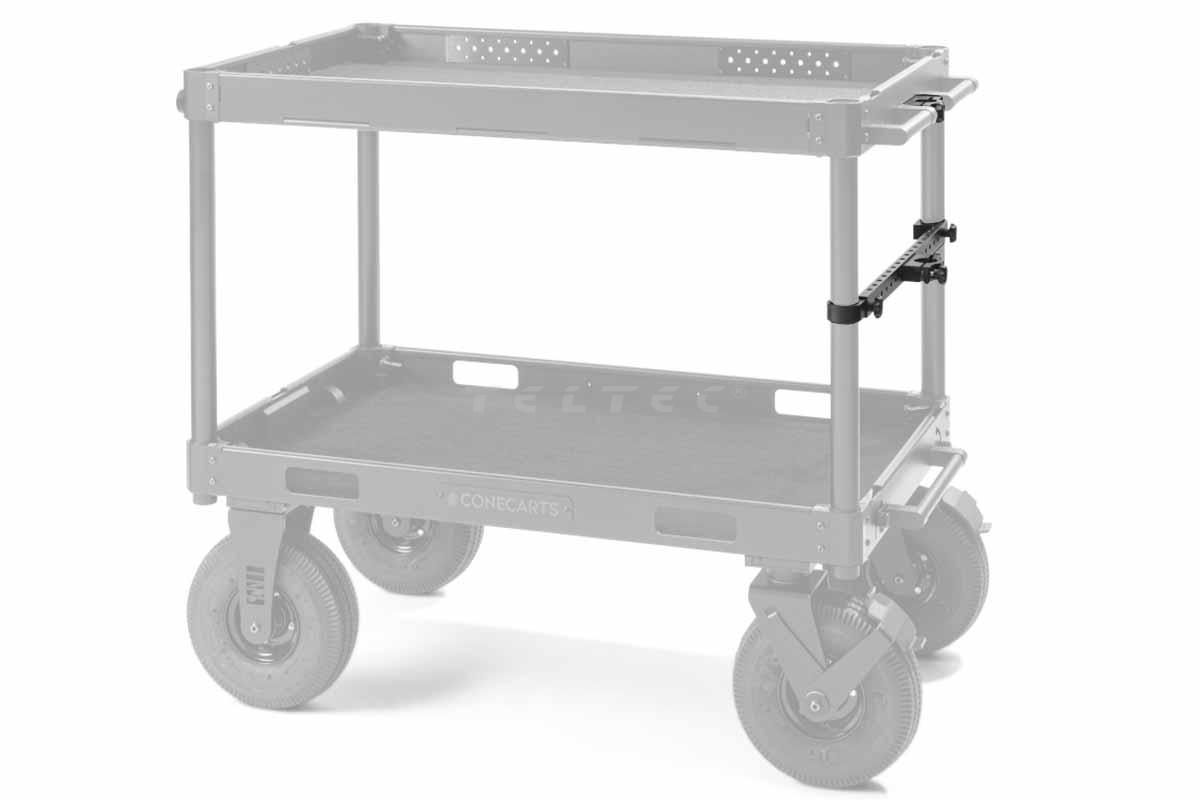 Das Conecarts Seitenträger-Kit erweitert den Conecarts Rocket Wagen mit zusätzlichen Befestigungsmöglichkeiten für weiteres Zubehör. Die Traverse wird mit zwei Rohrklemmen für für Ø 35 mm Rohre einfach zwischen den beiden vorderen oder hinteren Säulen am Rocket Cart angebracht.