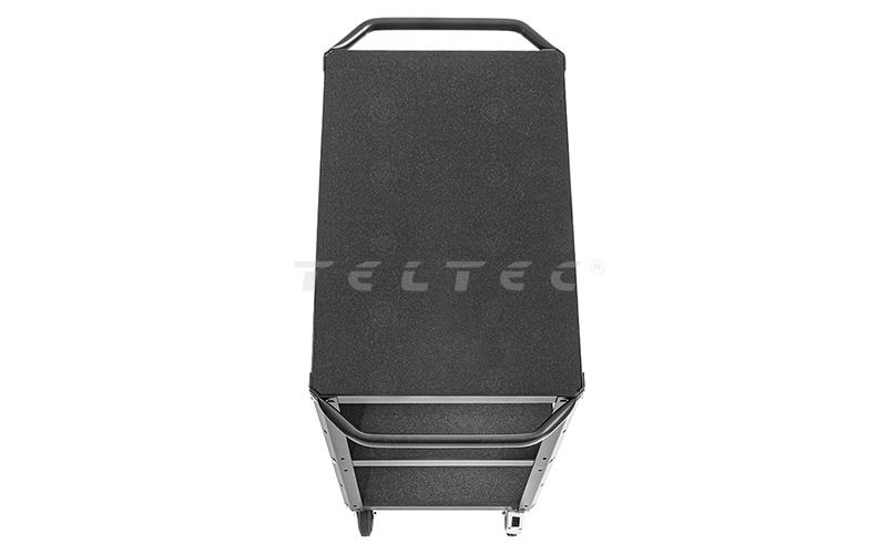 Dreistöckiger Rollwagen aus Stahl, mit Rasterschaumstoff ausgelegte Ablageflächen