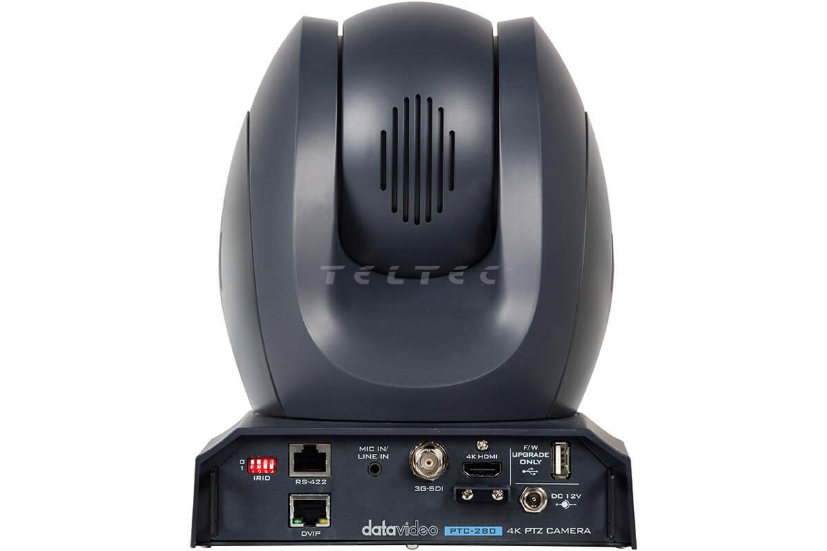 Die Datavideo PTC-280 ist eine 4K Schwenk-/Neige-Kamera mit einem verbauten 1/2,5" CMOS Sensor. Die PTZ-Kamera bietet Auflösungen bis 3840 x 2160p60 (HDMI 2.0) und bis 1920 x 1080p60 über 3G-SDI, einen 12x optischen Zoom und einen 16x digitalen Zoom. Die Videoausgabe kann gleichzeitig über HDMI und 3G-SDI erfolgen. Die PTC-280 bietet zusätzlich die Möglichkeit simultane Streams in 2160p und 720p zu senden. Mit einer Blende von F1.8 (AGC an) ist die Leistung selbst bei wenig Licht (0,5 Lux) exzellent.