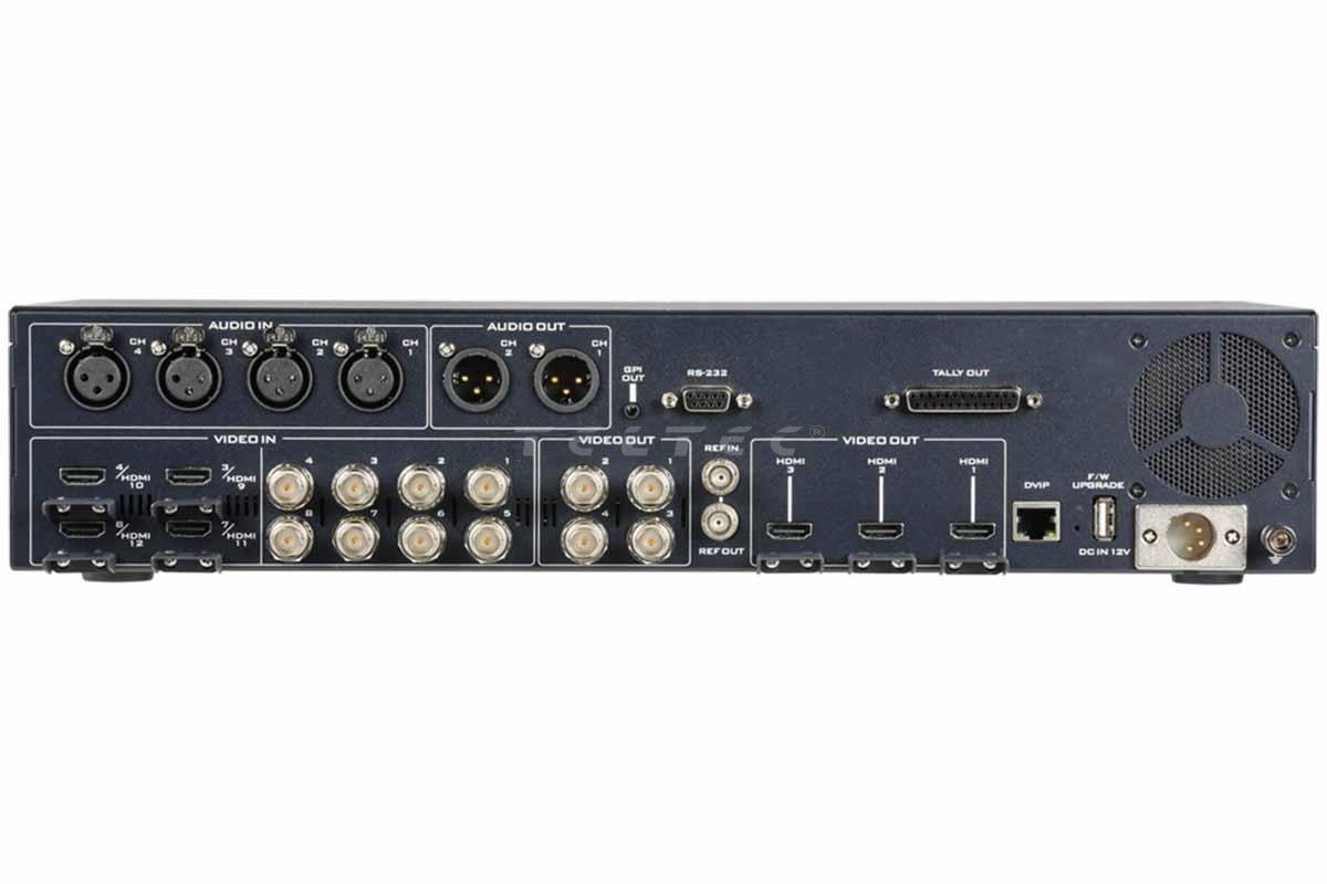 - Acht Live-Eingänge aus zwölf wählbaren Anschlüssen (8x 12G-SDI, 4x HDMI)