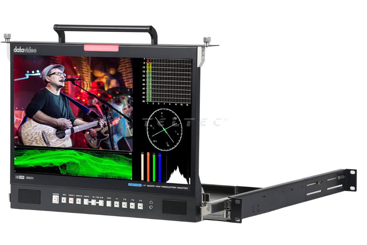 Der Datavideo TLM-170KM ist ein ausziehbarer 17" 4K UHD LCD Monitor. Der Monitor ist mit einem UHD 3840x2160 IPS Panel ausgestattet, verfügt über einen Betrachtungswinkel von 178°, einer Helligkeit von 300 cd/m² sowie einem Kontrastverhältnis von 1000:1. Darüber hinaus wird HDR für HLG und SMPTE 2084 unterstützt, sodass die Darstellung von 4K HDR-Inhalten ermöglicht wird. Zu den Bildverwaltungsfunktionen gehören Wellenform, Vektorscope, Fokus-Peaking, Falschfarben, Histogramm, Peaking, Zoom, Bildschirmmarkierungen, Bildumkehr und mehr. Der Monitor verfügt über 12G-SDI und HDMI- Anschlüsse und ist ideal für Anwendungen im Broadcast und in der Live-Produktion geeignet.
