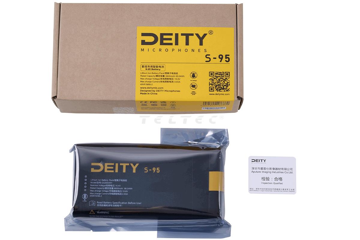 Das Deity S-95 Battery ist ein Smart Lithium-Ionen Akku (SMBUS) mit 95 Wh, der zur zuverlässigen Stromversorgung von Sound Recordern entwickelt wurde. Die S-95 kann von externen Geräten, wie dem Deity SPD-1, zur Anzeige der Akkudaten ausgelesen werden. Der Akkupack ist mit einem Mikrocontroller mit SMBus sowie einer Zusatzschaltung zur Versorgung externer Hosts oder intelligenter Ladegeräte ausgestattet. Mit bis zu 1000 Ladezyklen zeichnet sich der Akku durch Landlebigkeit aus und bietet zudem eine 5-stufige LED-Akkuanzeige.