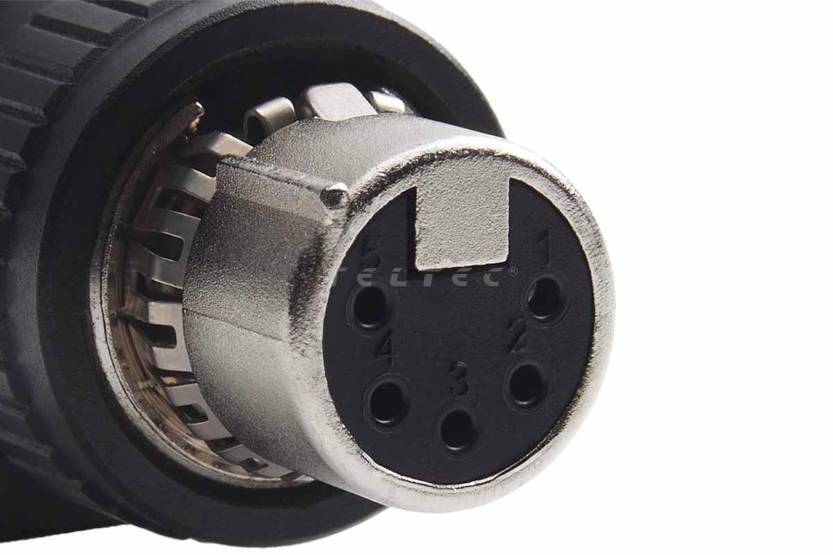 Der Deity THEOS DXTX 5-Pin XLR Stereo Analogue Plug-on ist für die Montage am Deity THEOS DXTX vorgesehen. Dieser Adapter ermöglicht es dem DXTX, eine Stereomikrofonquelle aufzunehmen. Der DXTX 5-Pin XLR Stereo Adapter ist aus einem Neutrik ECM XLR Stecker gefertigt. Dieser Stecker bietet eine verbesserte HF-Abschirmung für kritische Anwendungen bei Live-Performances und Aufnahmen, bei denen ein höheres Maß an Funkübertragung oder RFI auftritt. Das Design garantiert eine durchgehende HF-Abschirmung vom Mikrofon zum Gehäuse des Chassissteckers über einen kreisförmigen Kondensator um die Abschirmung.