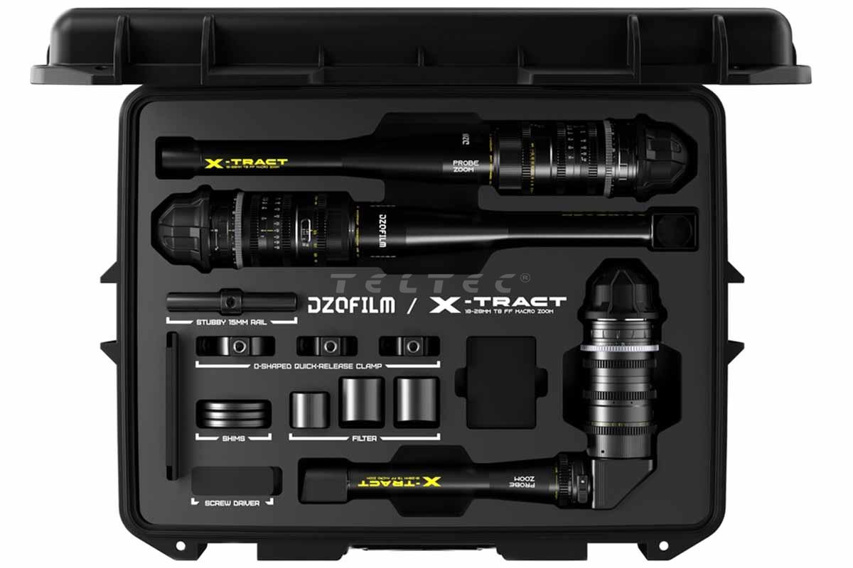 - 1x DZOFILM X-TRACT 18-28mm 0/90/360° Kit (3 vollständige Objektive mit festem Tubus)