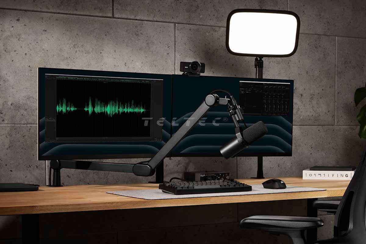 Der Elgato Wave Mic Arm high Rise MK2 ist ein flexibler Mikrofonarm für Streaming-, Podcasting- und Produktionsumgebungen. Er wurde speziell für professionelle Setups entwickelt, bei denen maximale Beweglichkeit, einfache Handhabung und ein aufgeräumter Arbeitsplatz gefragt sind. Durch die robuste Stahlkonstruktion und das vollständig einstellbare Design ermöglicht der Arm präzise Mikrofonpositionierung bei gleichzeitiger Stabilität. Das Kugelgelenk mit Schwenkbereich sowie die vollständig drehbare Basis sorgen für hohe Flexibilität, während das interne Kabelmanagement für eine saubere Optik sorgt. Dank der Tragfähigkeit von bis zu 1,2 kg lassen sich gängige Mikrofone und Zubehör sicher montieren. Mit der breiten Klemme passt der Arm an eine Vielzahl von Tischplatten und bleibt auch bei intensiver Nutzung zuverlässig in Position.