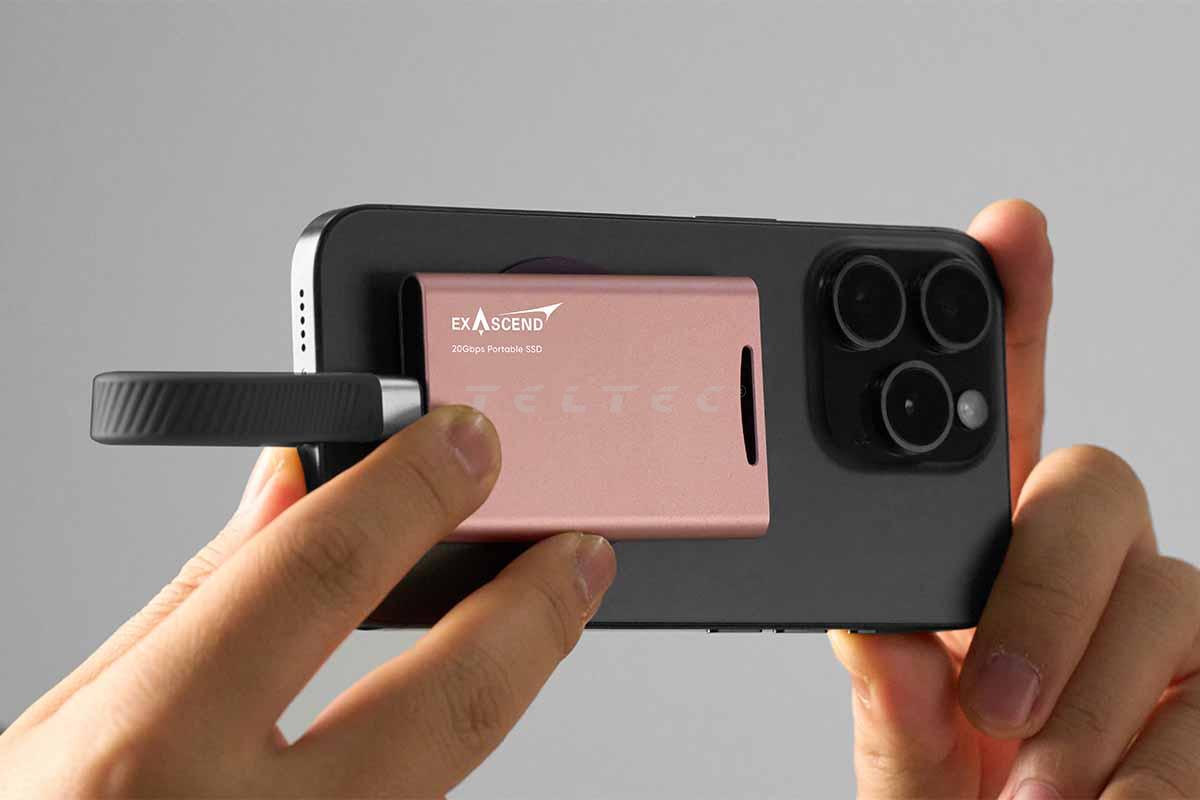 Die ExAscend Element Portable SSD USB Type C 20Gb/s Rose Gold 1TB ist eine externe SSD mit USB-C-Anschluss und 2.000 MB/s Lese- sowie Schreibgeschwindigkeit. Sie ist ideal geeignet für den Einsatz z.B. mit einem iPhone und kommt deshalb auch in einem kleinen und leichten Design. Mit ihr ist das Speichern von 4K60 ProRes Aufnahmen kein Problem.