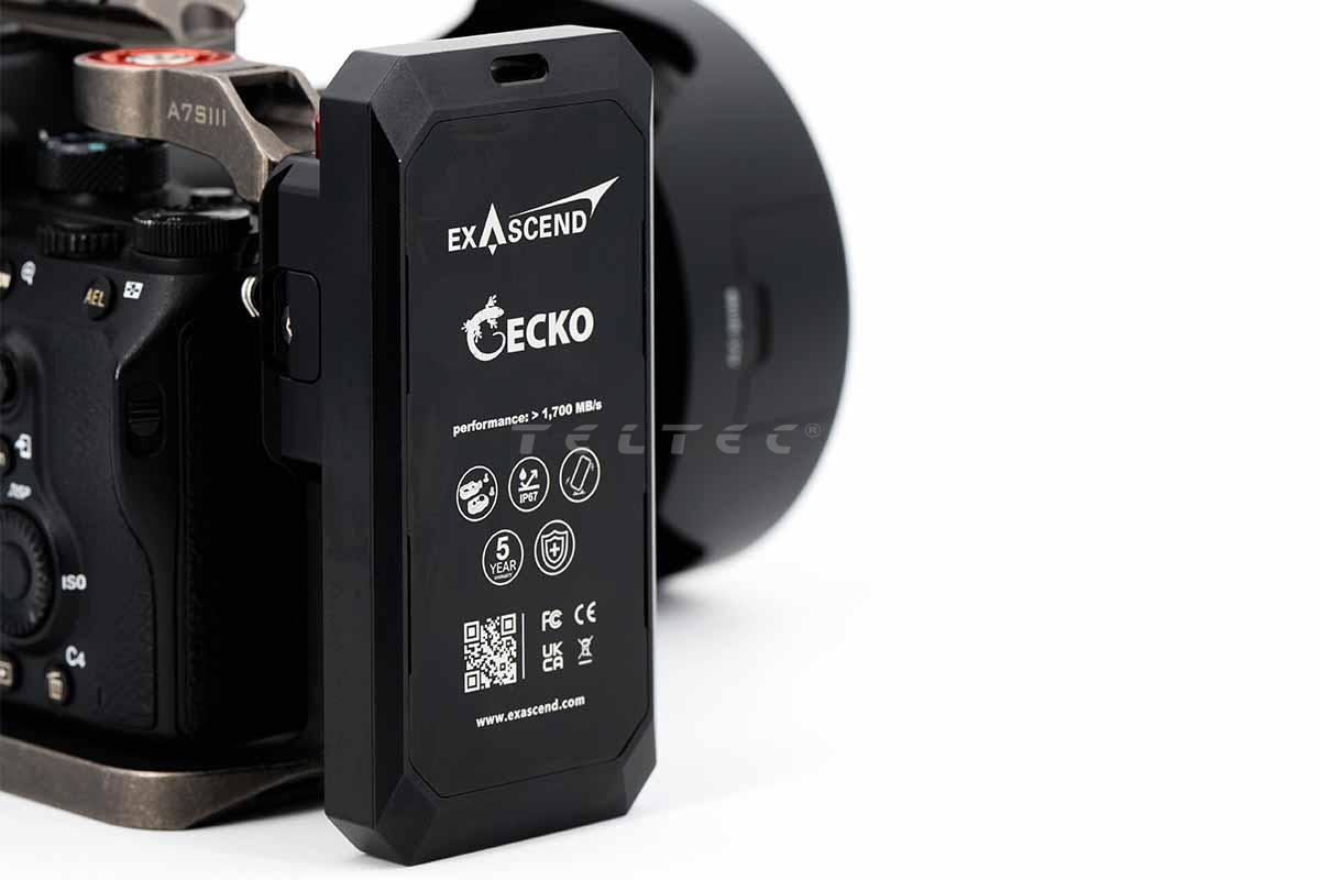 Die ExAscend Gecko Portable SSD USB Type C 20Gb/s 1TB ist eine externe SSD mit USB-C-Anschluss und 1.700 MB/s Lese- bzw. 1.600 MB/s Schreibgeschwindigkeit bei einer anhaltender Schreibgeschwindigkeit von 1.600 MB/s. Sie ist ideal geeignet für Videokameras von z.B. Blackmagic Design und haben eine TBW-Lebenszeit von bis zu 1.500 TB.