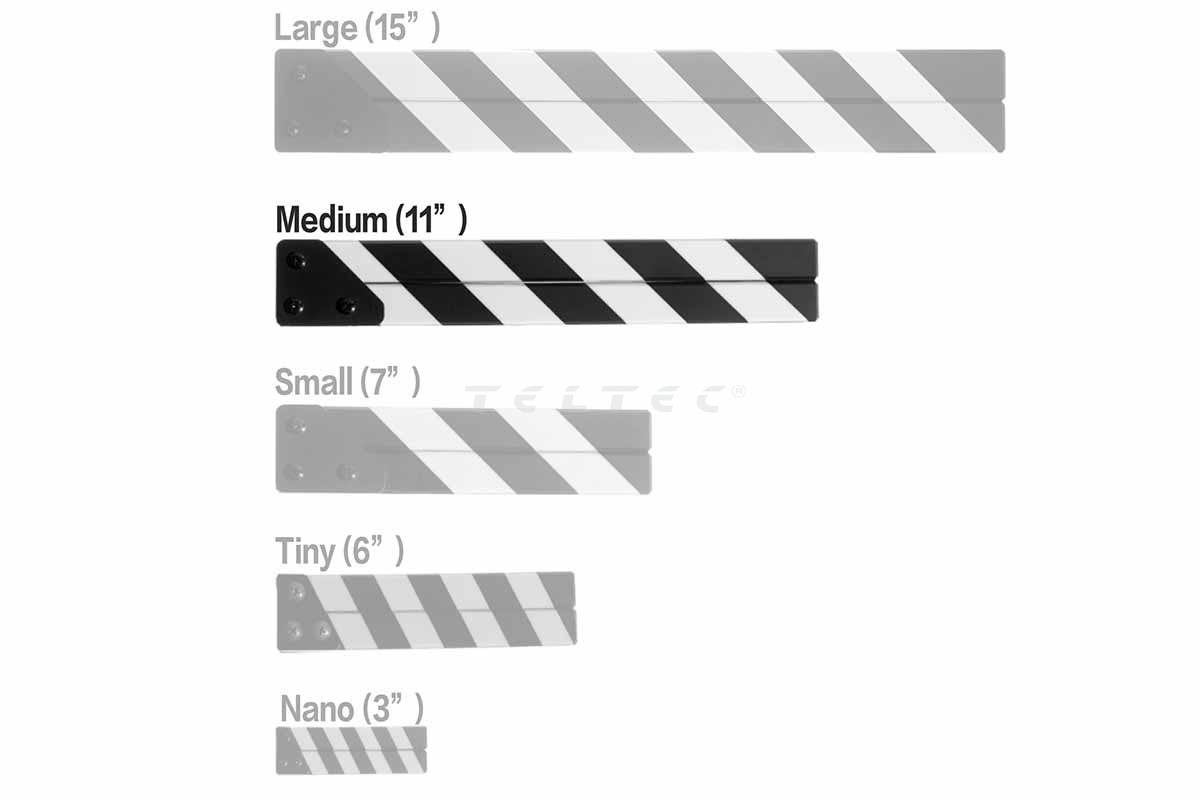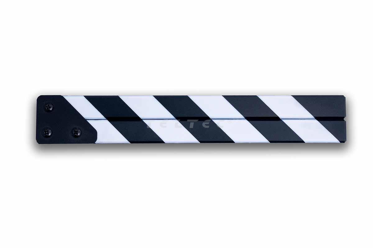 Die Filmsticks ClapperSticks MEDIUM sind wetterfeste Filmklappen-Sticks aus ABS-Kunstharz. Mit einer Länge von gerade einmal 28 cm sind die ClapperSticks MEDIUM die zweitgrößten ihrer Sorte. Sie haben einen 3,5 mm breiten Einschub für Slates. Der Nut- und Federeinsatz ermöglicht es, das Markierungsband beim Messen von Entfernungen zu greifen. Zusätzlich verhindert er das Durchdringen von Licht durch die geschlossenen Sticks und reduziert zudem das seitliche Verschieben.