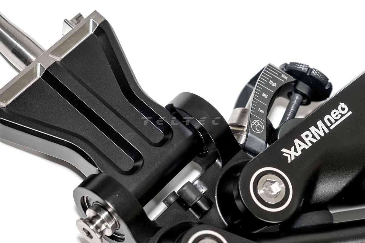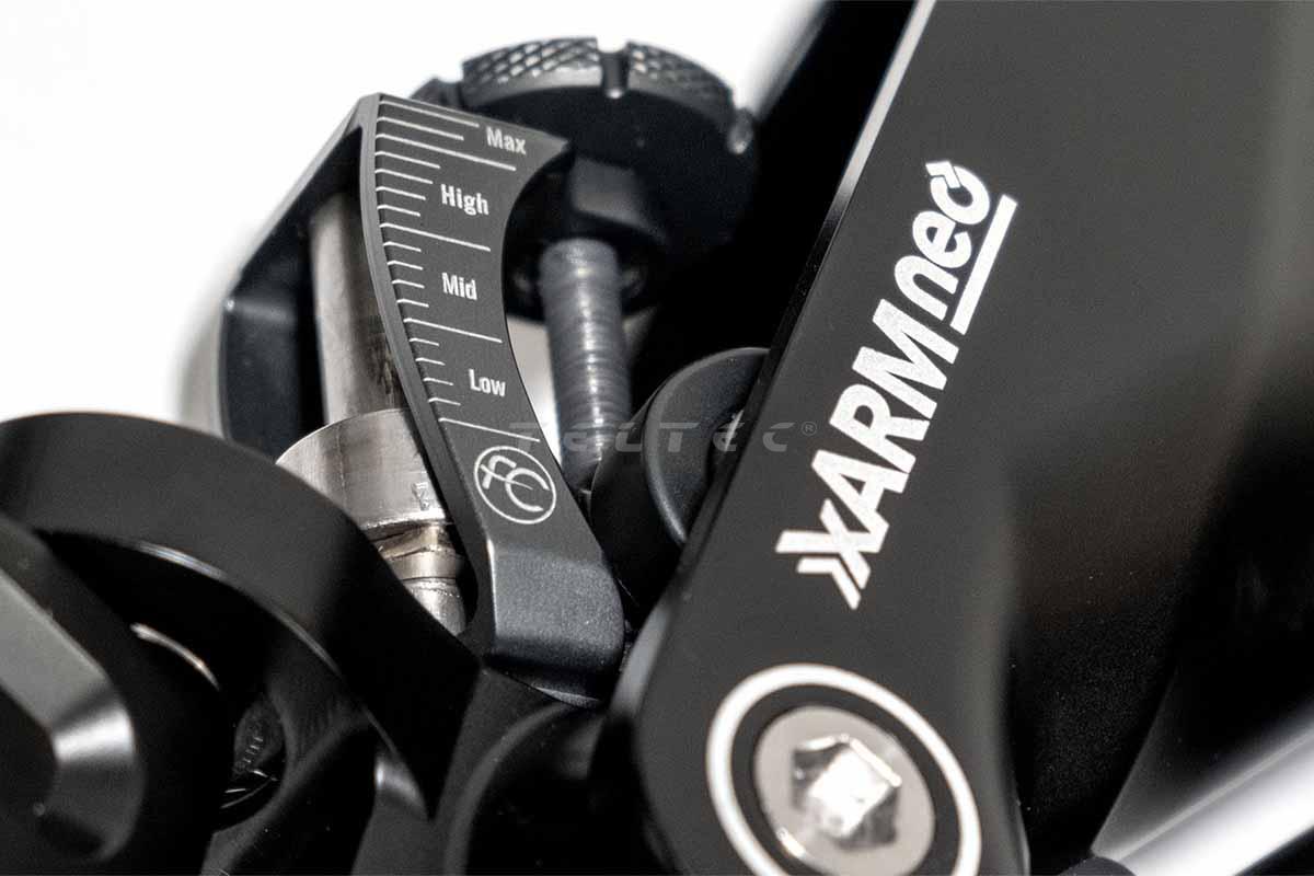 Der FlowCine xARM Neo ist ein mehrgelenkiger Stabilisierungsarm mit Federkernsystem. Er ist die verbesserte Version des alten xARMs und kann unter anderem bei geringerem Eigengewicht eine höhere Last tragen. Zudem hat er ein komplett neues Federkernsystem, was werkzeugloses Abstimmen der Hubkapazität zwischen 12,5 und 36 kg ermöglicht. Das neue System kommt auch mit nur einem verbesserten Kern zurecht, statt wie vorher 6 verschiedene zu haben. Neu ist auch die noch geringere Reibung für noch geschmeidigere Bewegungen. Durch die ebenfalls geringere Größe ergibt sich mehr Freiheit in der Bewegung, während dabei die Auslegerreichweite mit bis zu 80 cm gestiegen ist. Der neue Sockelblock auf der Vorderseite des xARM Neo lässt sich ohne Werkzeuge einstellen. Die Armstütze ruht auf einer Doppellagerung, die über eine auch werkzeuglos einstellbaren Reibungsbremse verfügt.