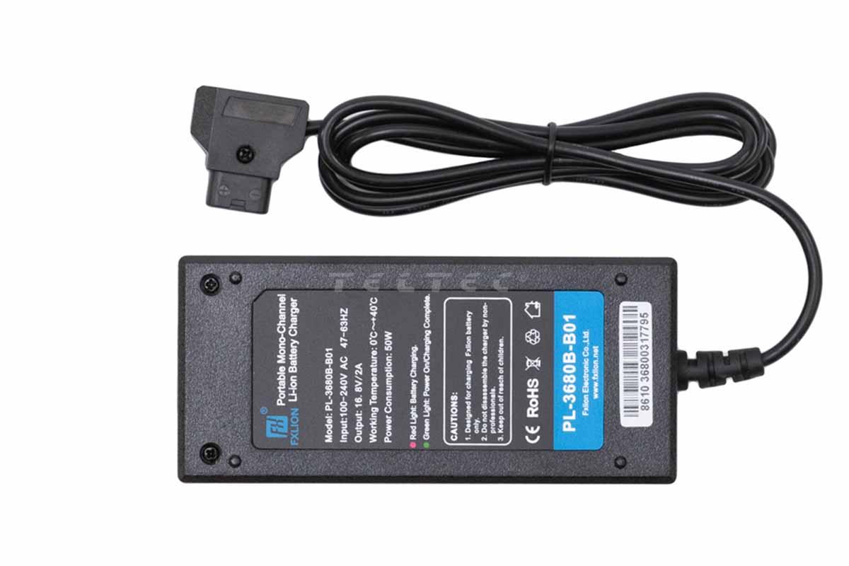 Das FXLion D-Tap Ladegerät PL-3680B-B01 ist ein Ladegerät mit einem Ladestrom von 2 Ampere. Es eignet sich sowohl für V-Mount- als auch für Gold-Mount-Akkus, die eine D-Tap-Schnittstelle besitzen.