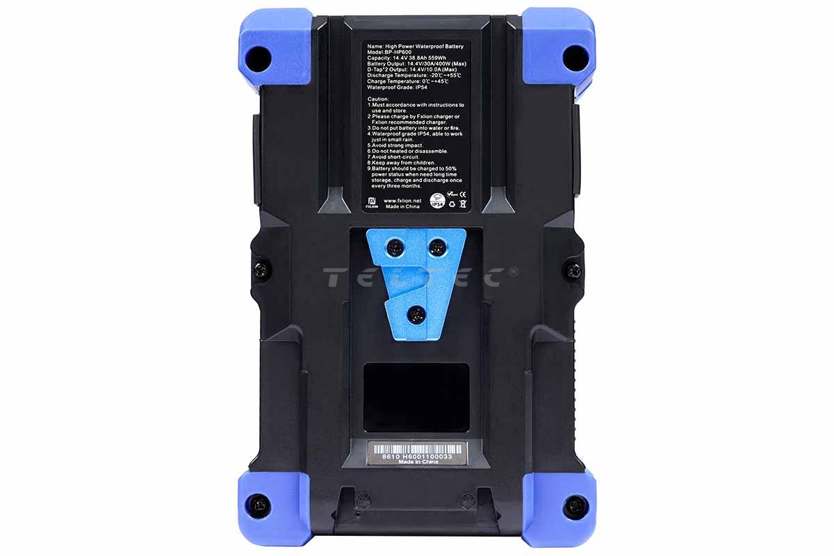 Der FXLION FX-BPHP600 14.4V / 559Wh High-Power-Akku ist ein 400-W-Akku mit 30 A Stromausgang für z.B. Leuchten. Er eignet sich ideal für Geräte, die mindestens 300 W benötigen und ist auch kompatibel mit 400-W-Geräten. Dank der beiden D-Tap-Ausgänge mit jeweils 14,4 V und 10 A können zwei weitere Geräte angeschlossen werden. Der Ladestatus des Akkus kann am 5-stufigen LED-Indikator ablesen werden. Neben diversen Schutzmaßnahmen gegen Überhitzung oder Überladung verfügt der Akku auch über eine robuste Hülle, die stoßfest und wasserabweisend ist.