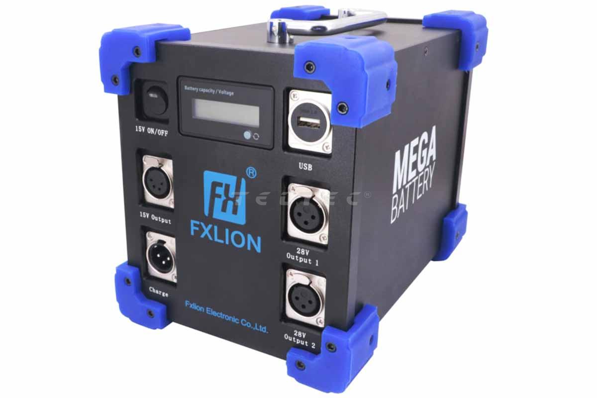 Der FXLION FX-HP7224P Mega Akku 28Vx2 / 15V / 1232Wh ist ein hochleistungsfähiger Akku mit drei XLR-3F-Ausgängen. Zwei davon versorgen jeweils ein Gerät mit 28 V, der dritte Ausgang bietet 15 V und kann über einen Kippschalter ein- und ausgeschaltet werden. Außerdem gibt es neben dem XLR-3M-Stromeingang noch einen USB2.0 Typ-A-Anschluss. Der Akku arbeitet mit bis zu 40 A, um Hochleistungsleuchten und andere Geräte auf einem Filmset zu versorgen. Die Schutzmaßnahmen verhindern Schäden durch Überladung, Überentladung und Überstrom sowie Überhitzung.