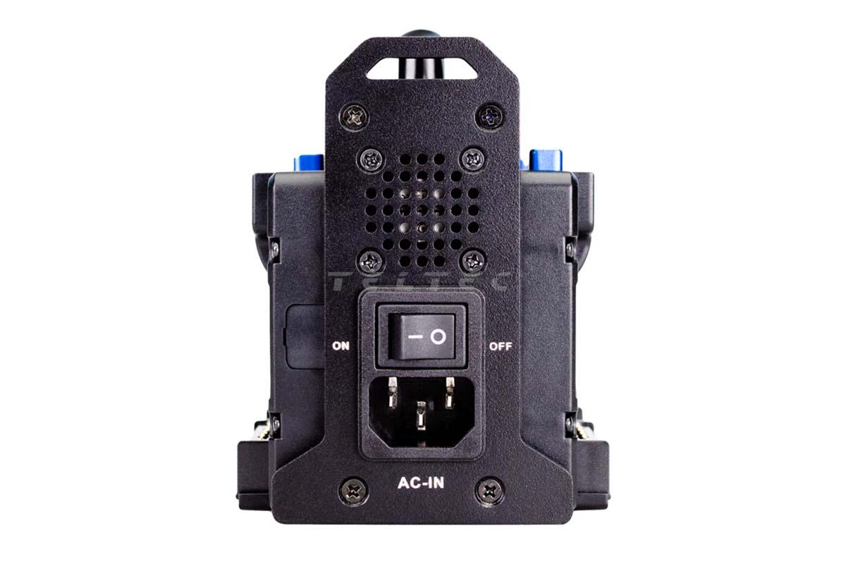 Mit dem 4-CH können ebenfalls andere V-Mount Akkus mit neuer Energie versorgt werden. Dies ist aus Platzgründen aber auf zwei Akkus begrenzt. Ist jeweils ein Akku auf einer Seite installiert, lädt das 4-CH diesen mit 2 Ampere.