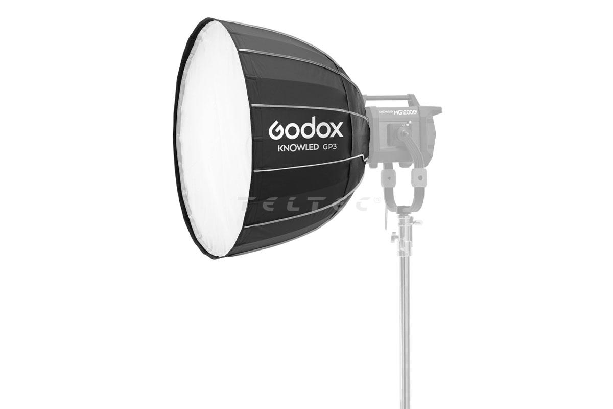 Die Godox GP3 Parabolic Softbox ist eine Parabol-Softbox mit G-Mount und einem Durchmesser von 90 cm. Die Softbox wurde speziell für die Godox KNOWLED MG1200Bi Bi-Colour LED Leuchte entwickelt und bewirkt ein weiches, gleichmäßiges Licht, das sich ideal für Portraits oder Produktaufnahmen eignet.