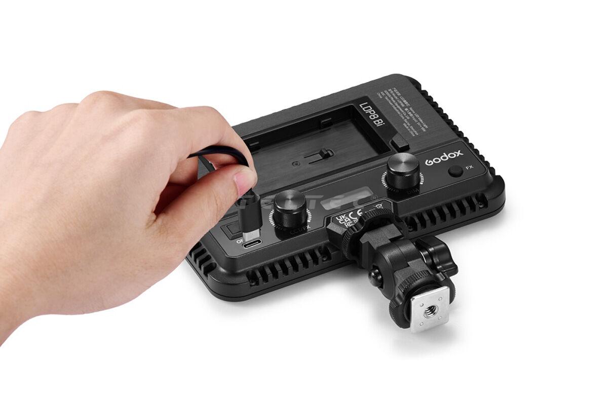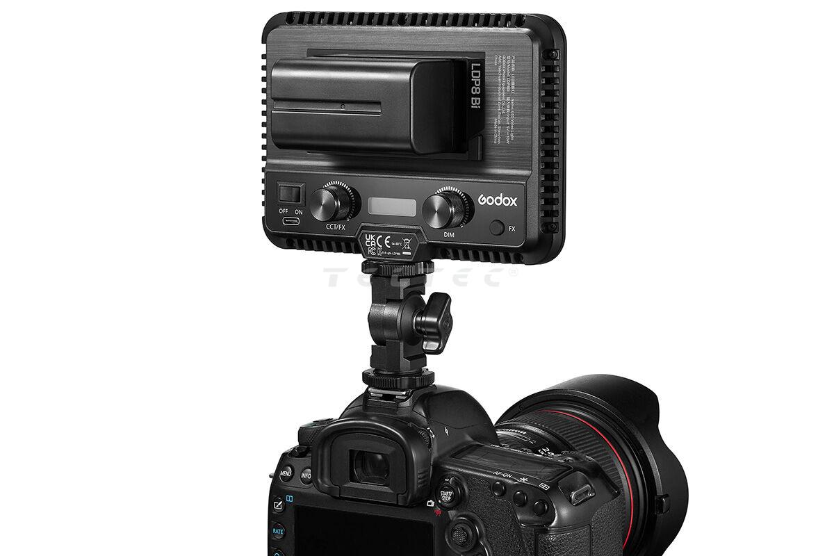 Die Godox LDP8Bi Streaming Slim Panel Light Bi-Color ist eine kompakte, dimmbare 10 Watt Bi-Color LED Leuchte der LDP Serie. Die kompakte Leuchte ist ideal zur Beleuchtung von Vlogs oder der Produktfotografie, da sie einfach auf einem Stativ oder einer Kamera montiert werden kann. Auf der Rückseite ist ein Display integriert, um die Parameter einzusehen und mit den daneben befindlichen Drehknöpfen einzustellen. Das Panel verfügt über 11 spezielle FX-Effekte, wie z.B. Blitz, TV-Bildschirm oder defekte Glühbirne und bietet eine variable Farbtemperatur in einem Bereich von 2.800 K - 6.500 K. Die LED bietet die Möglichkeit mit einem NP-F-Akku* versorgt zu werden, sodass mehrstündige Aufnahmen mühelos möglich sind. Außerdem ist die Stromversorgung über ein Netzkabel ist gegeben.